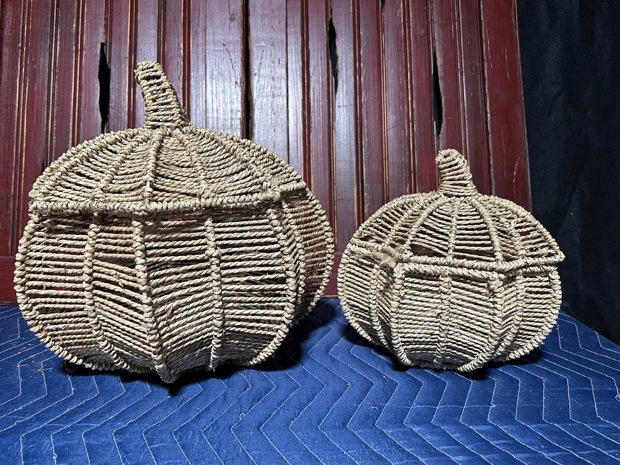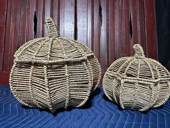 They have a rustic, organic texture and a pumpkin shape with a stem.