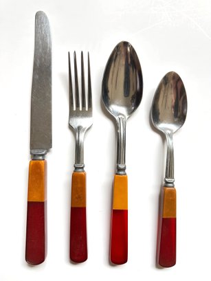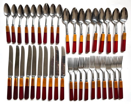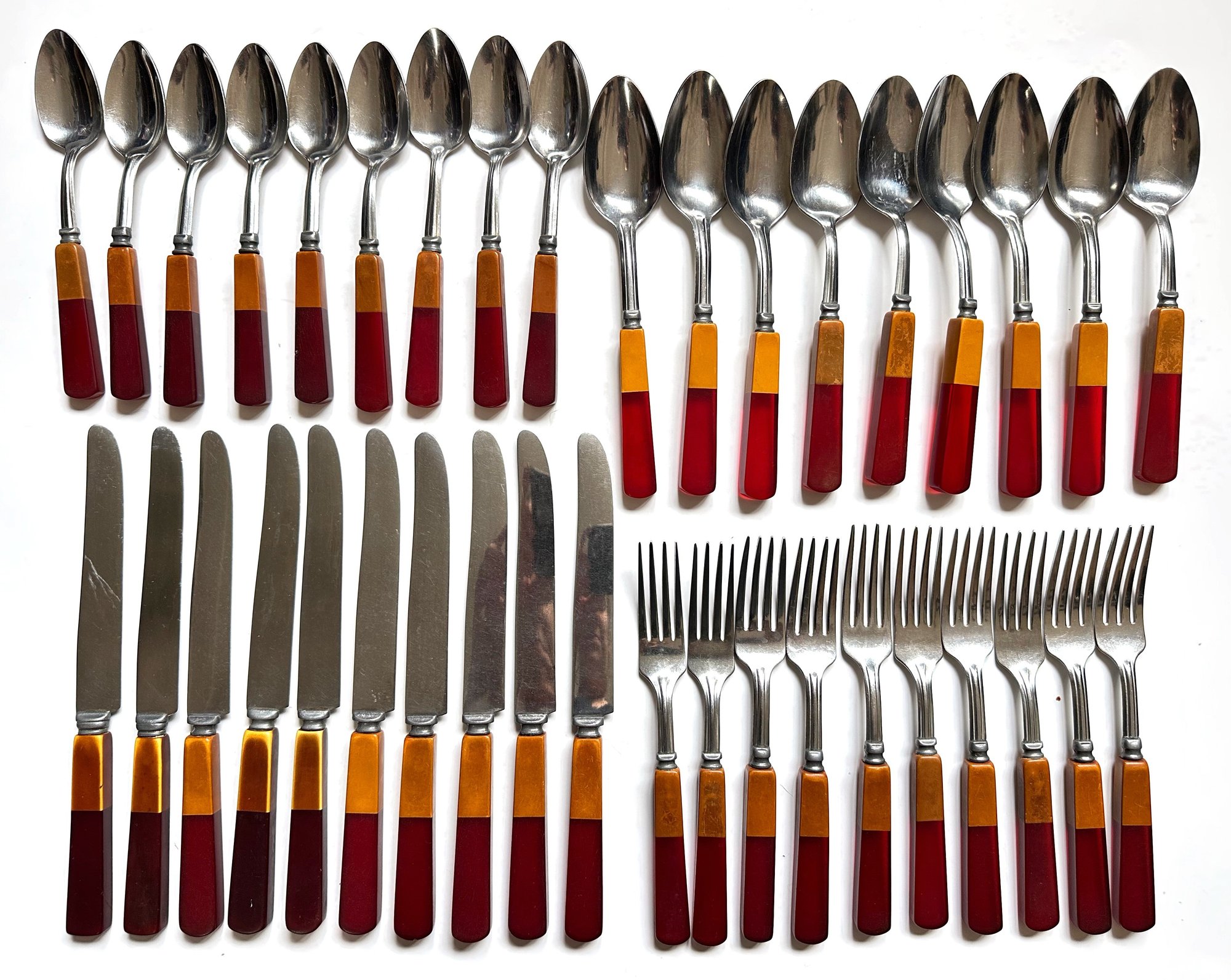 9 of each size spoon, 10 forks, 10 knives style varies slightly
