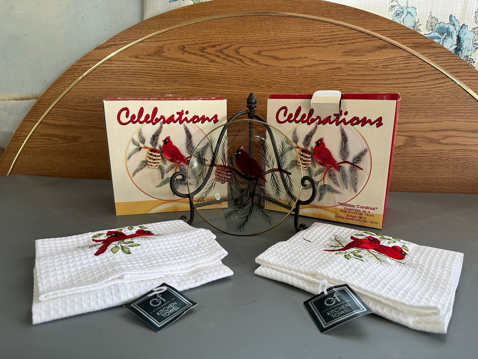 plates are 4 per box. new in box. Each box $40. retail. Kitchen towels are new
