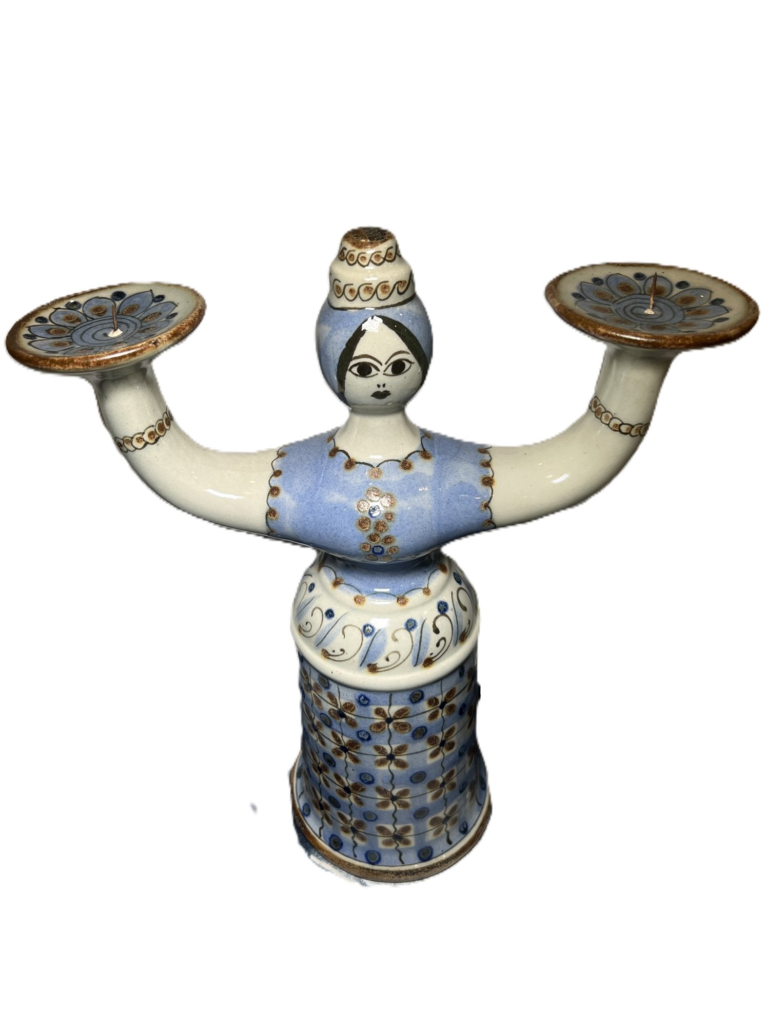 Striking woman form Mexican Tonala pottery candlestick signed El Palomar.