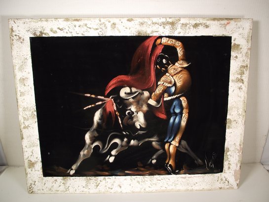 SIGNED FRAMED OIL PAINTING ON BLACK VELVET. PLEASE SEE PHOTOS FOR CONDITION.