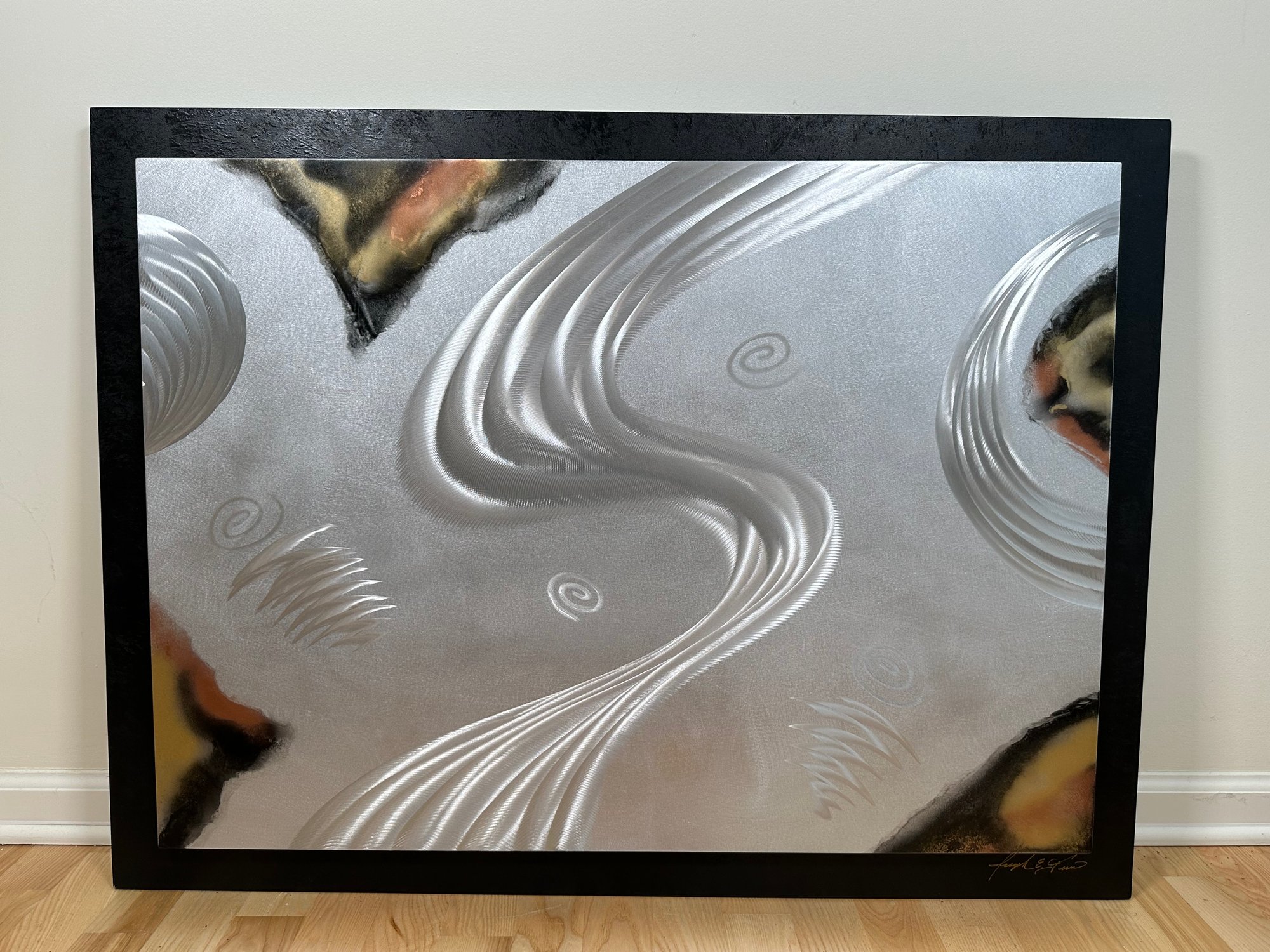 Signed Joseph E Fina Metal & Wood Mixed Media Textured Abstract Wall Art