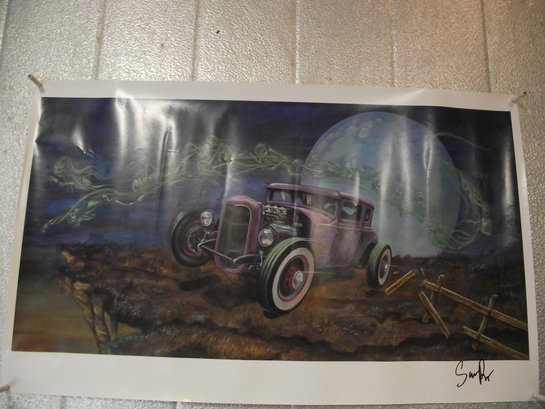Signed Litho By Sara Ray Purple Car