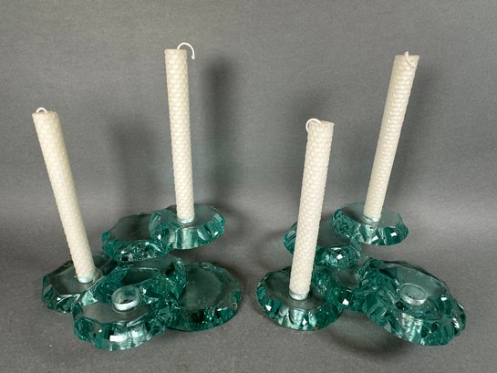 Good ready to display condition. Each set is 9” long total and they stand 3” tall. They come with four candlesticks.