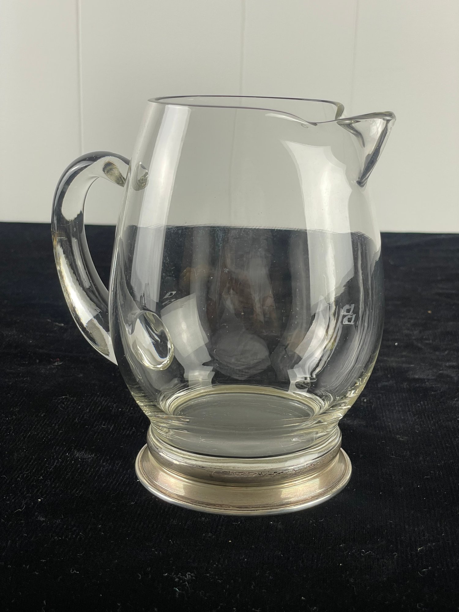 Silver Colored Pedestal Base Clear Glass Pitcher