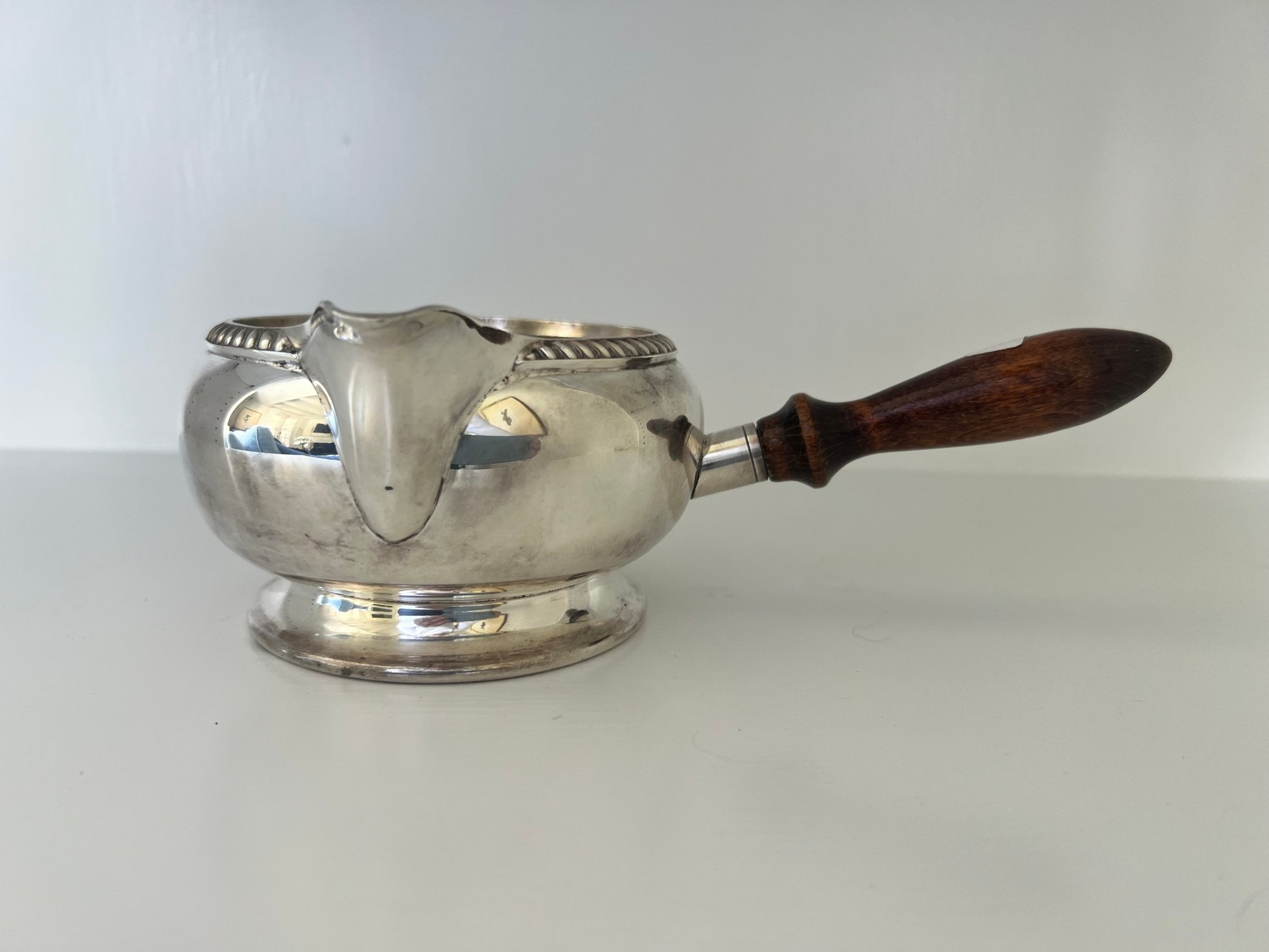 Silver-Plated Sauce Bowl with Wooden Handle – 4 ¾" x 4 ¾" (8 ¾" with Handle)