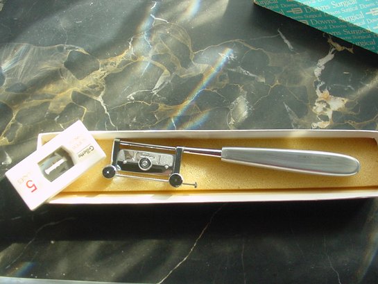 Silvers Knife for cutting skin grafts #HG165-011-L, high quality medical equipment from Down Surgical Supply England, basically a hand held microtome. Brand New In Box. Cost value about $200