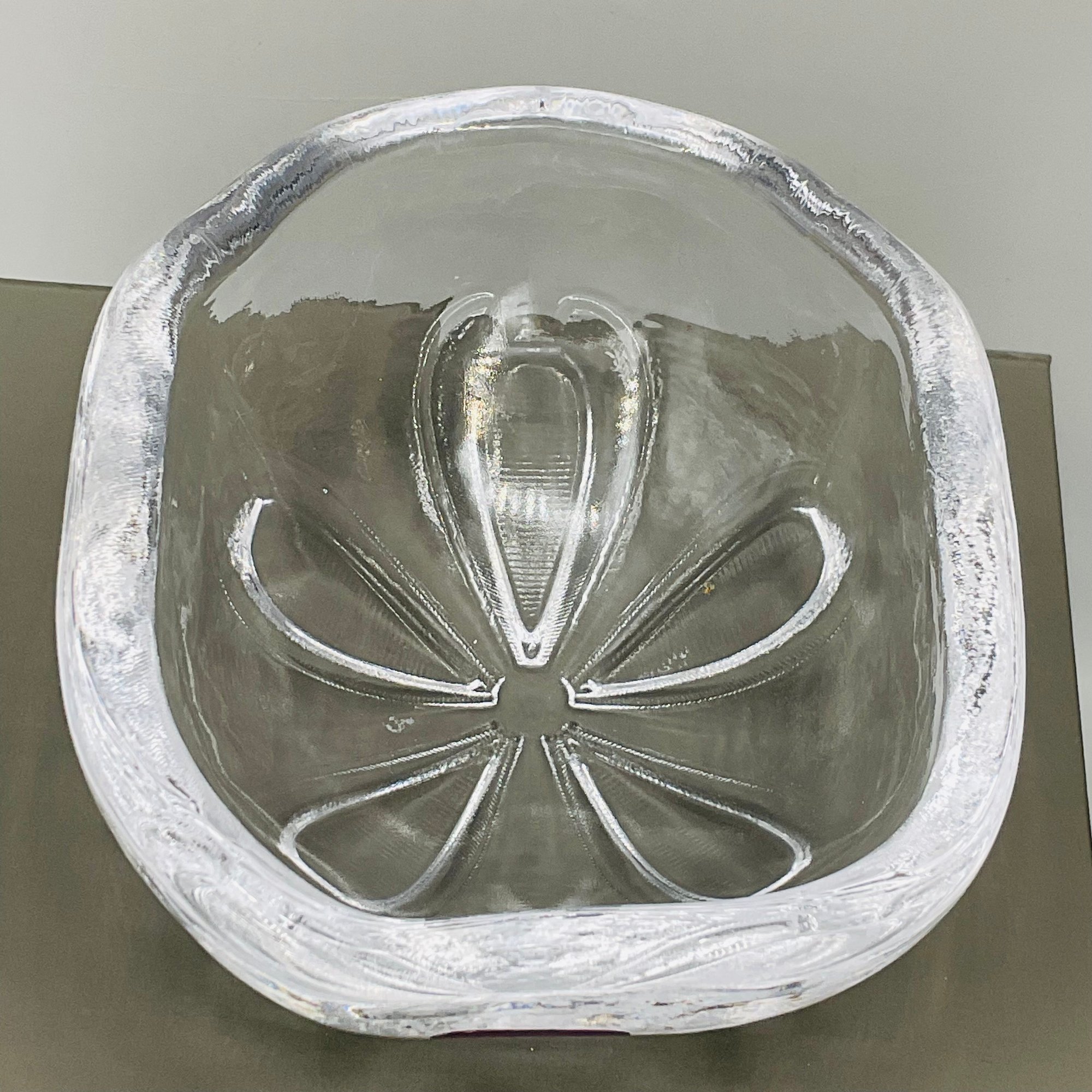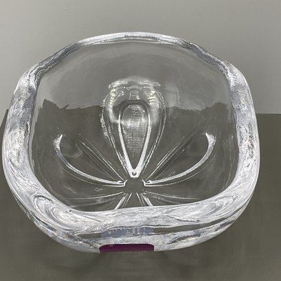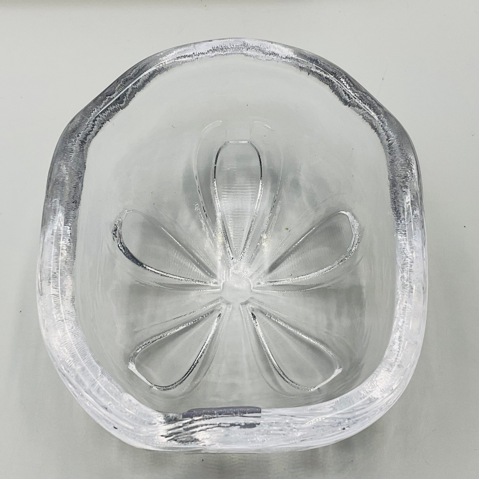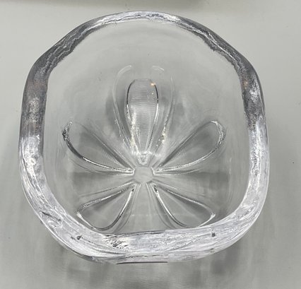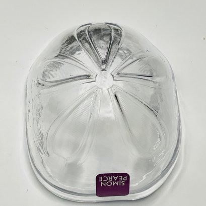 This elegant Simon Pearce Sand Dollar Bowl features the master craftsmanship and organic design the Vermont-based glassworks is known for. The bowl is intricately detailed on the underside to mimic the natural symmetry of a sand dollar, while the heavy, hand-blown glass provides a brilliant clarity that catches the light beautifully.