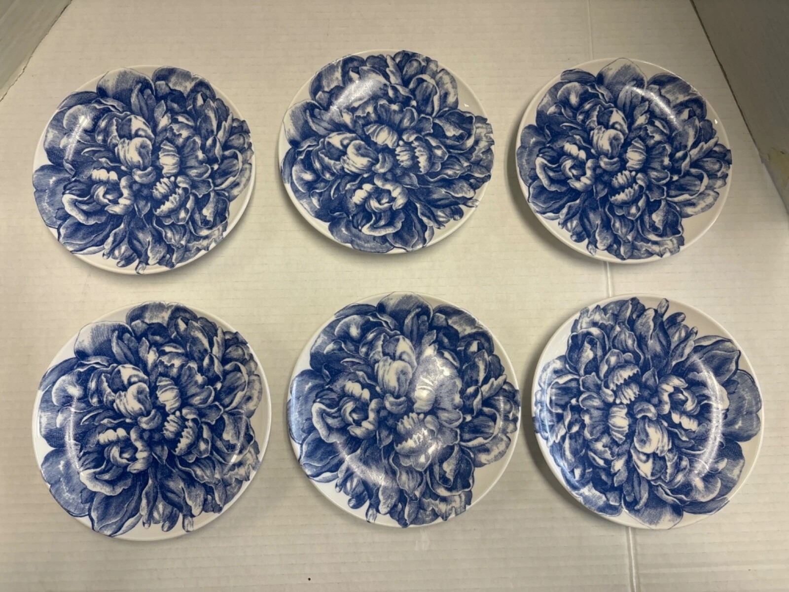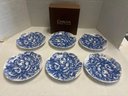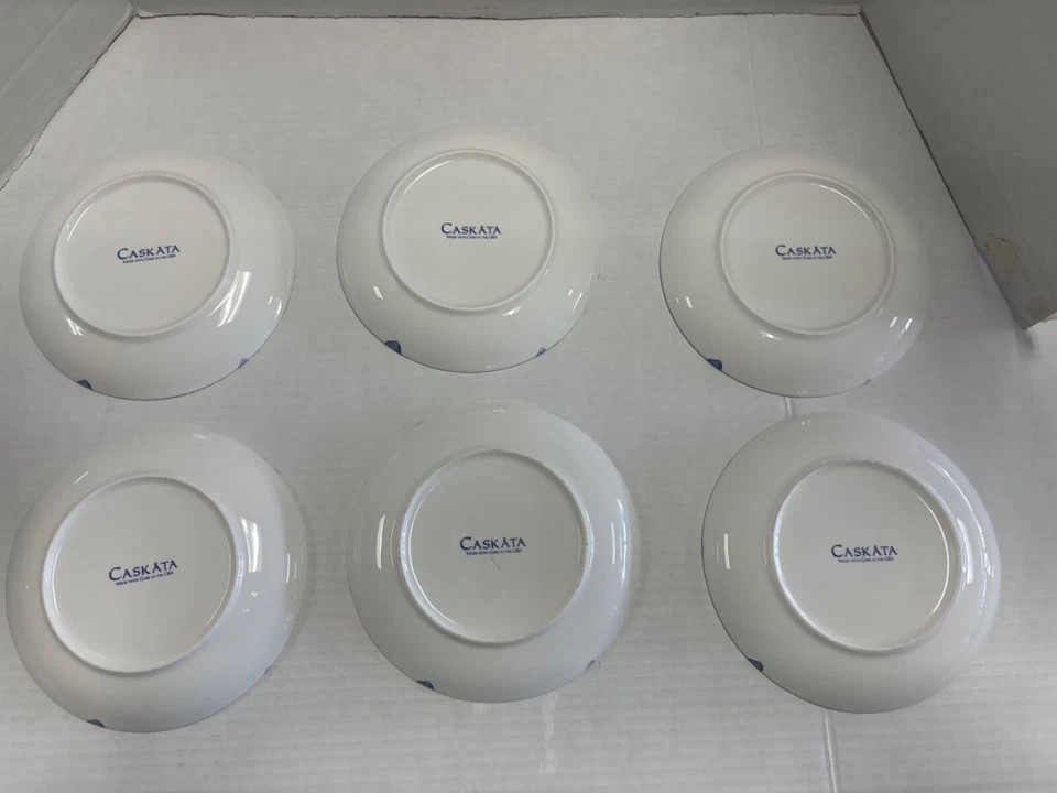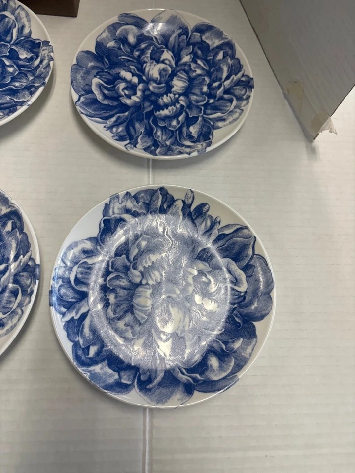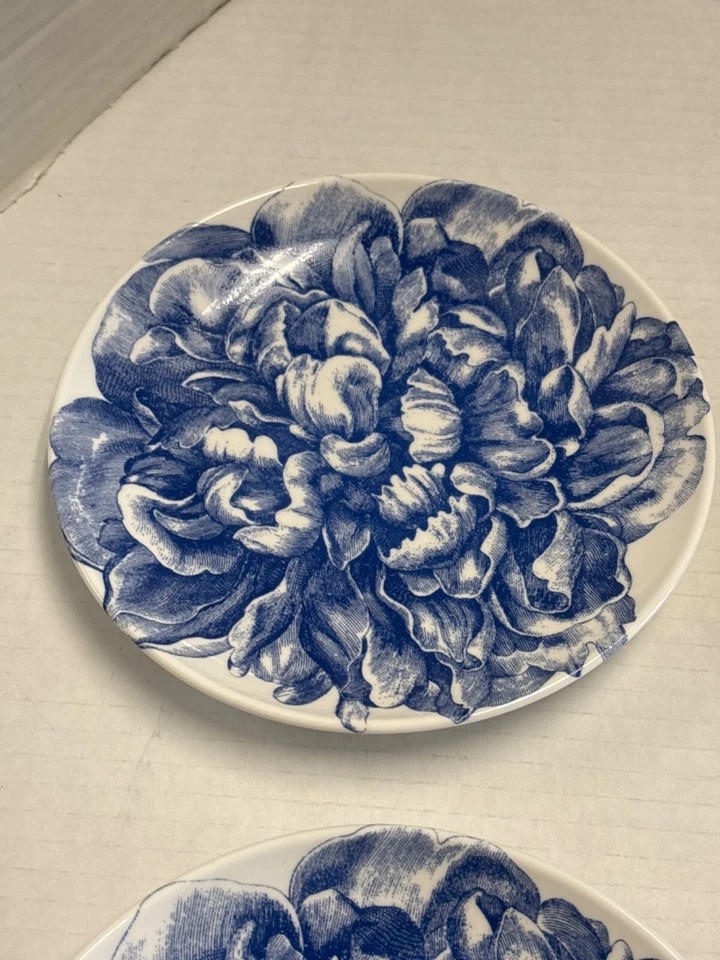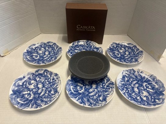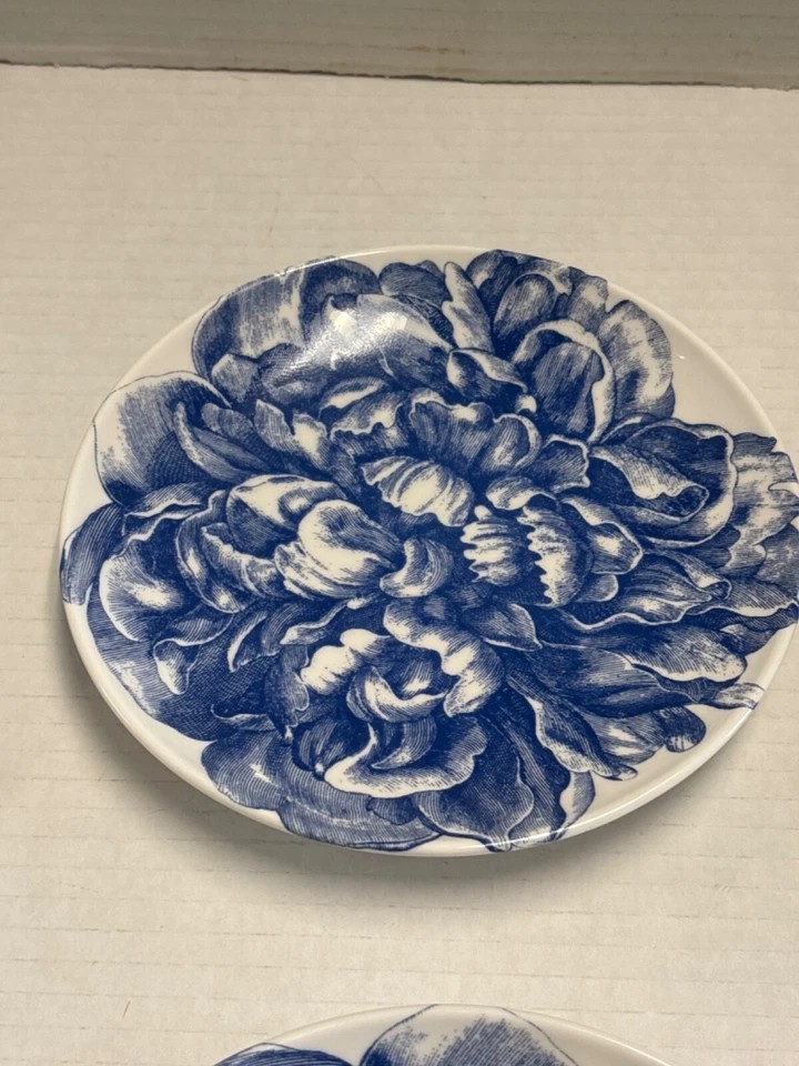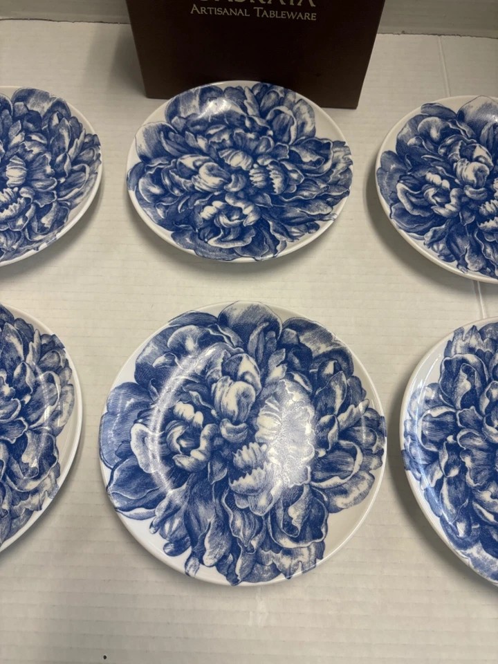 Six Caskata collection -Peony blue and white floral pattern - Canapè Plates, high-fired porcelain, Artisanal Tableware - come in a Caskata Gift Box. Made with care in the USA.