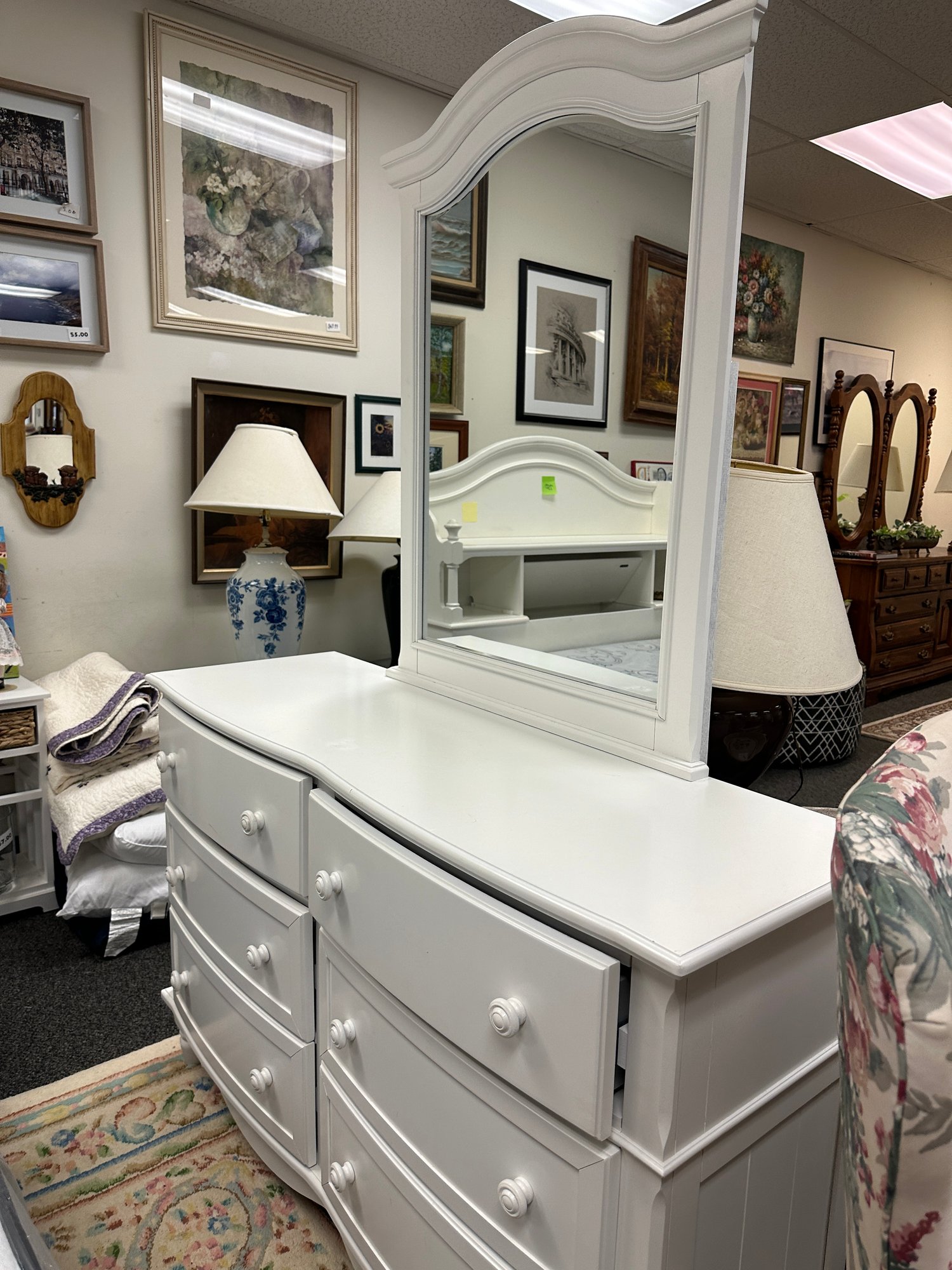 matches bed in separate lot. 54 x 17 x 34 mirror 30 x 42 like new cond.