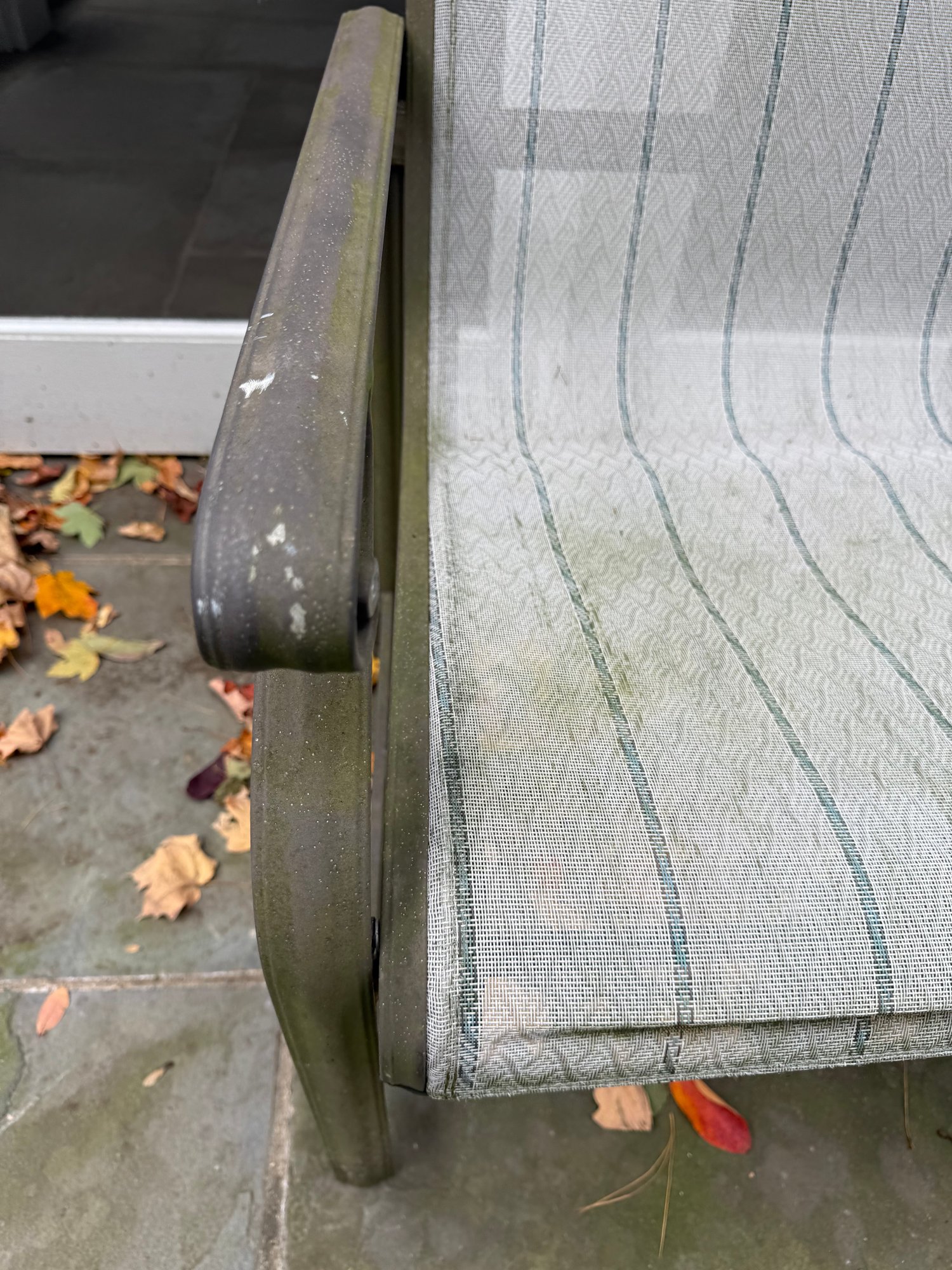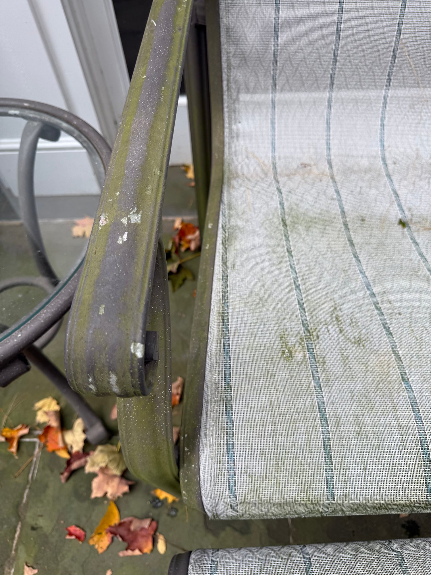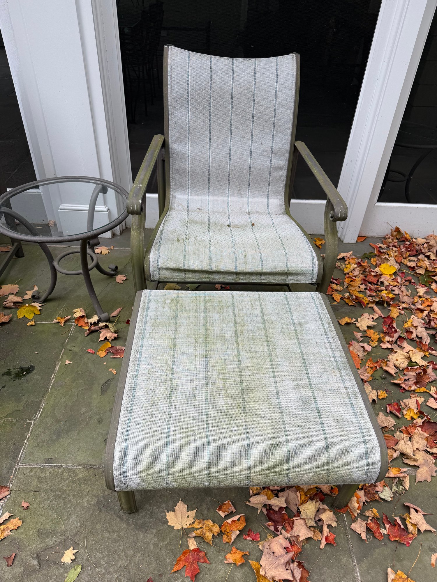 two ottomans and side table. They have all been kept outdoors and mesh in need of power wash, they are being sold in “as is” condition.