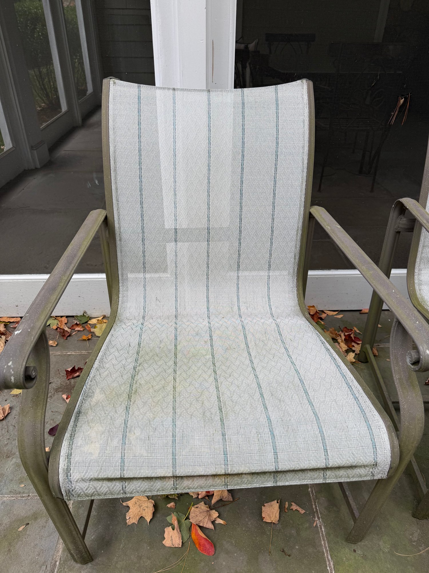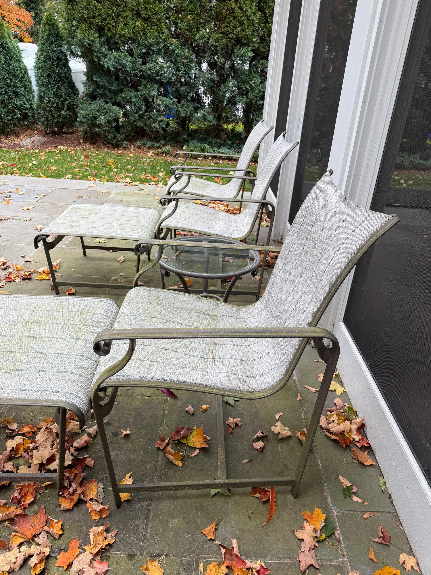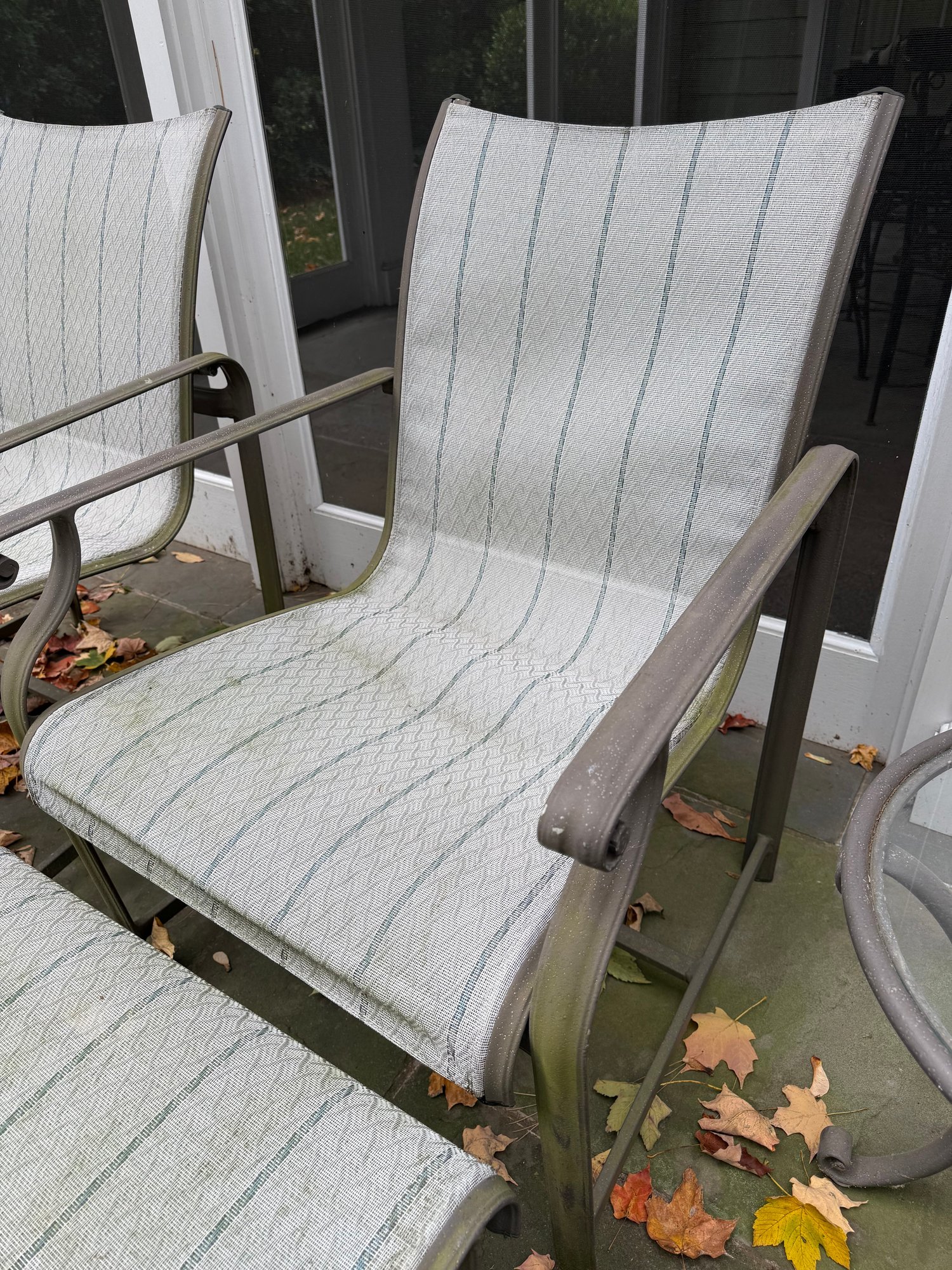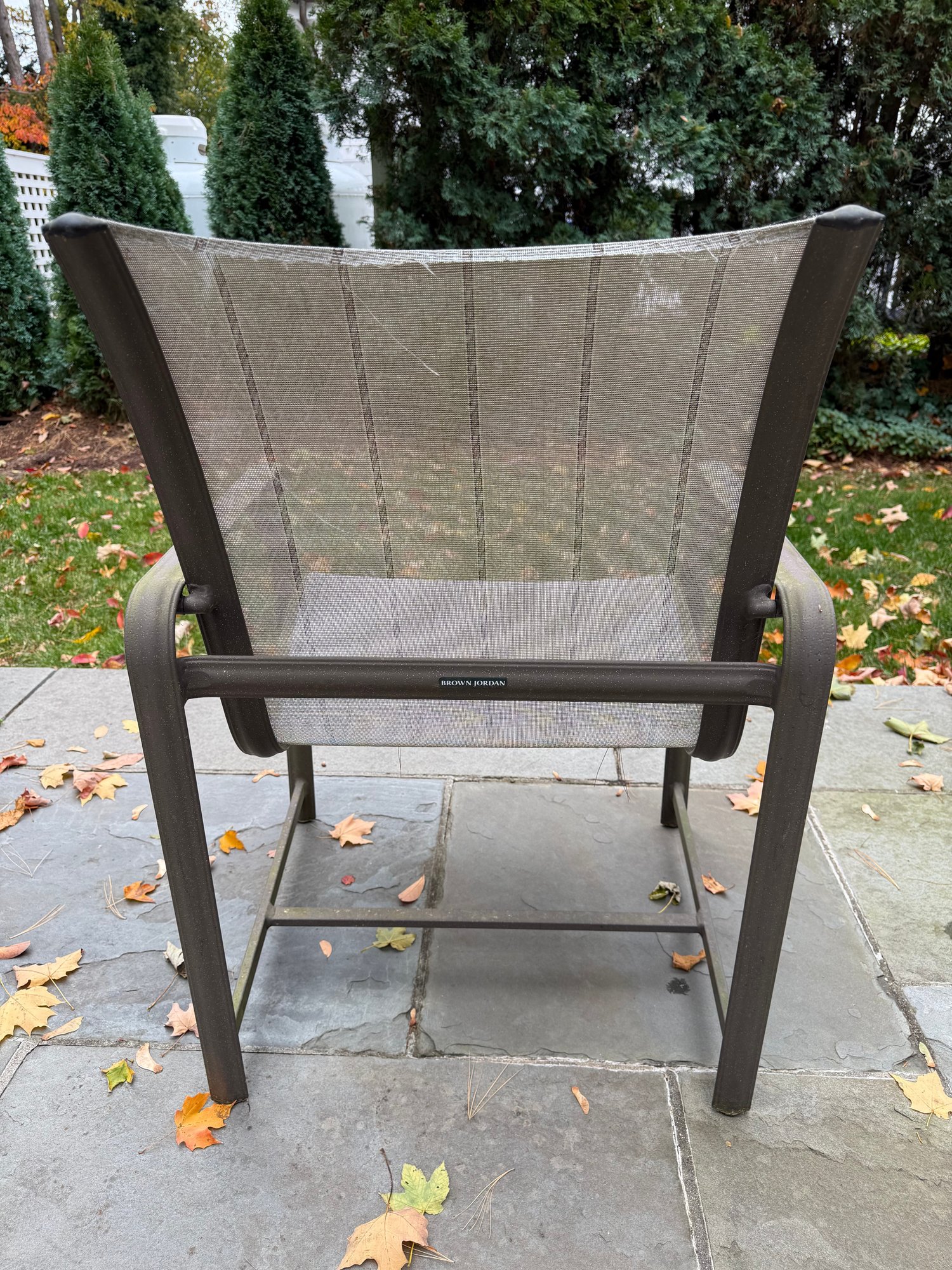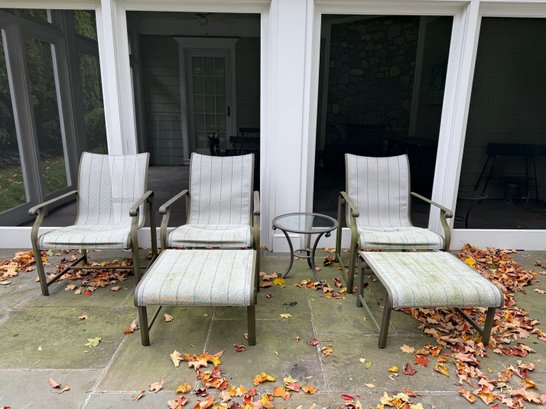 This six piece Brown Jordon group includes three chairs,