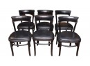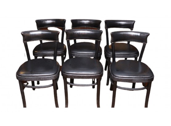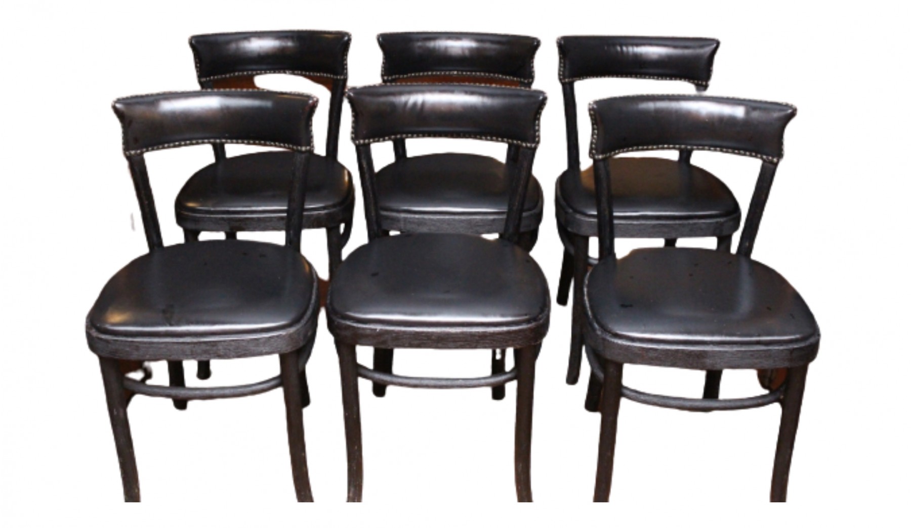 Six Restoration Hardware Bistro chairs with black leather nail head trim