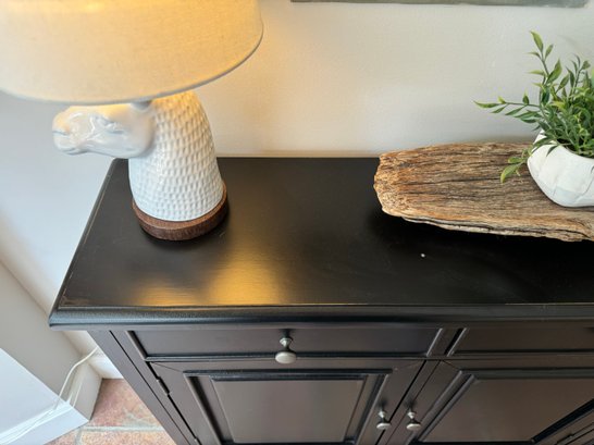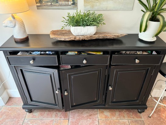 With three top drawers and bottom shelf areas.