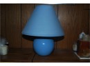 A ver cute, vintage, small blue table lamp. Perfect for a small end table.