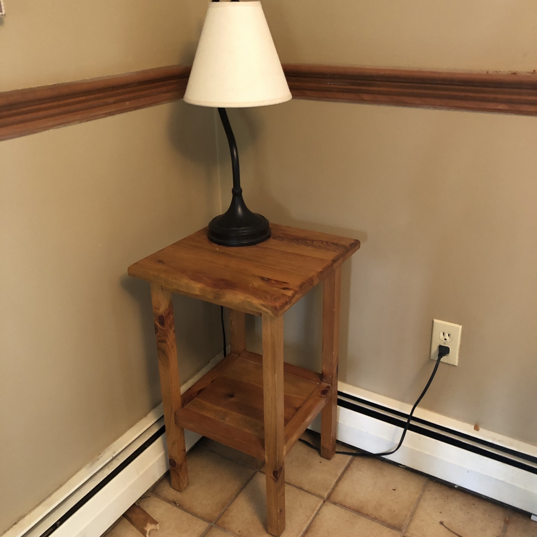 Small Pine Table With Lamp. Measures 25"x15"x15".