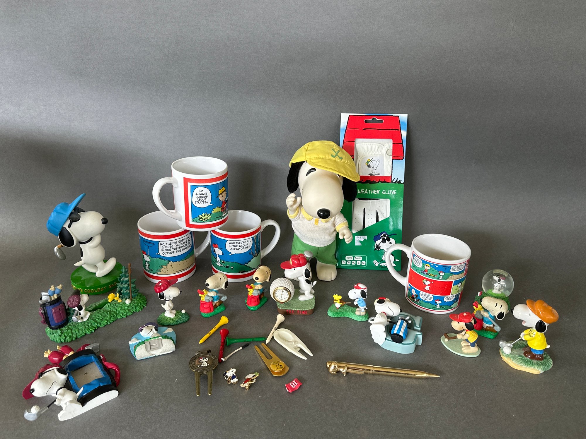 Check out this large collection of Snoopy Golf related items! Mugs, figurines, pins, pen, clocks and more