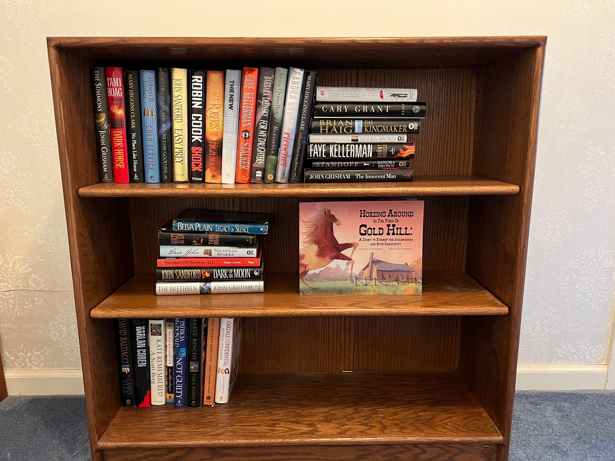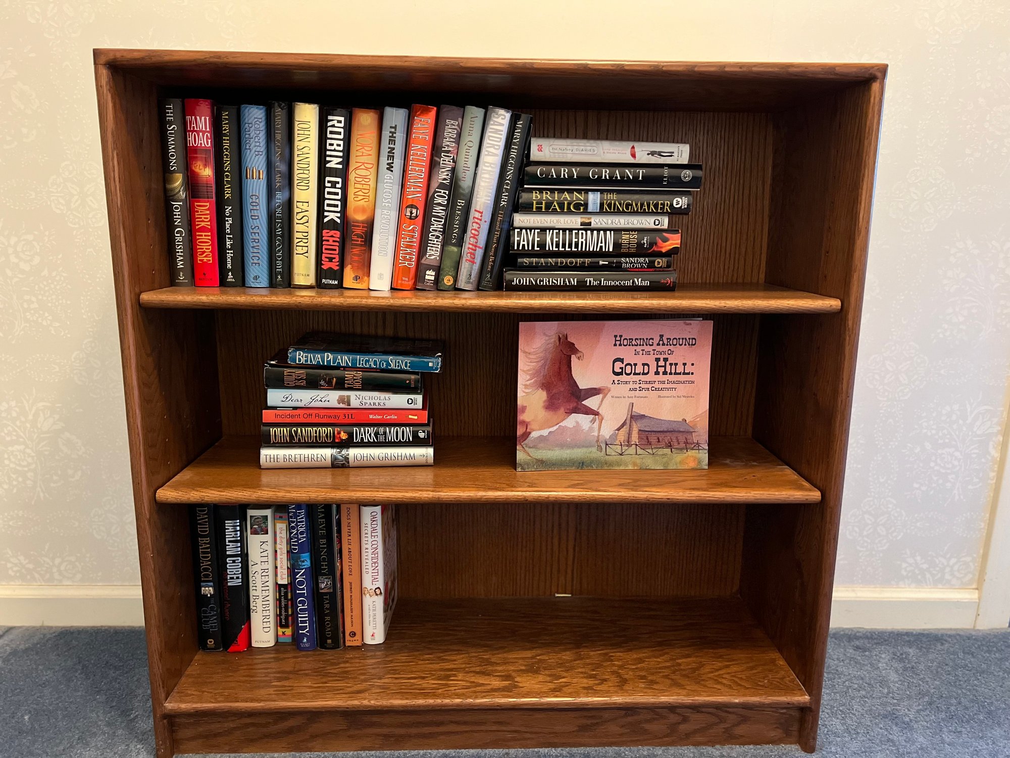 Up for auction is a sturdy, well-made small bookshelf measuring 36 inches tall, 36 inches long, and 12 inches deep, offered along with all the books pictured. This is a perfect set for collectors, families, or anyone looking to add a ready-to-use bookshelf full of engaging reads.