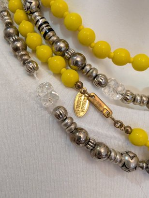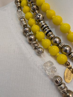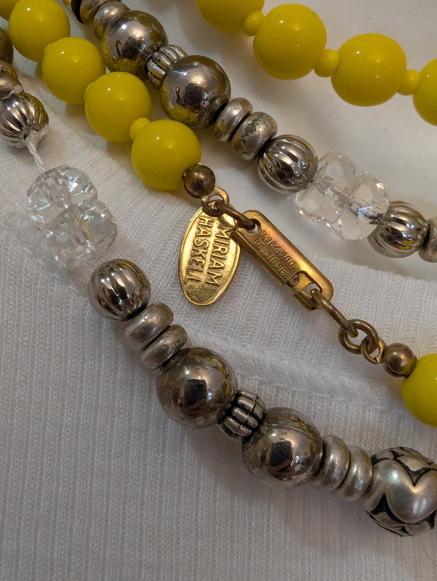 Solid Yellow Miriam Haskell Beaded Necklace And Multi Shape Metal Tone Beaded Necklace