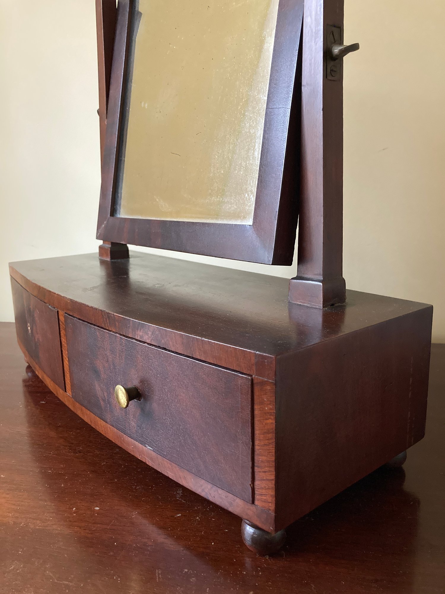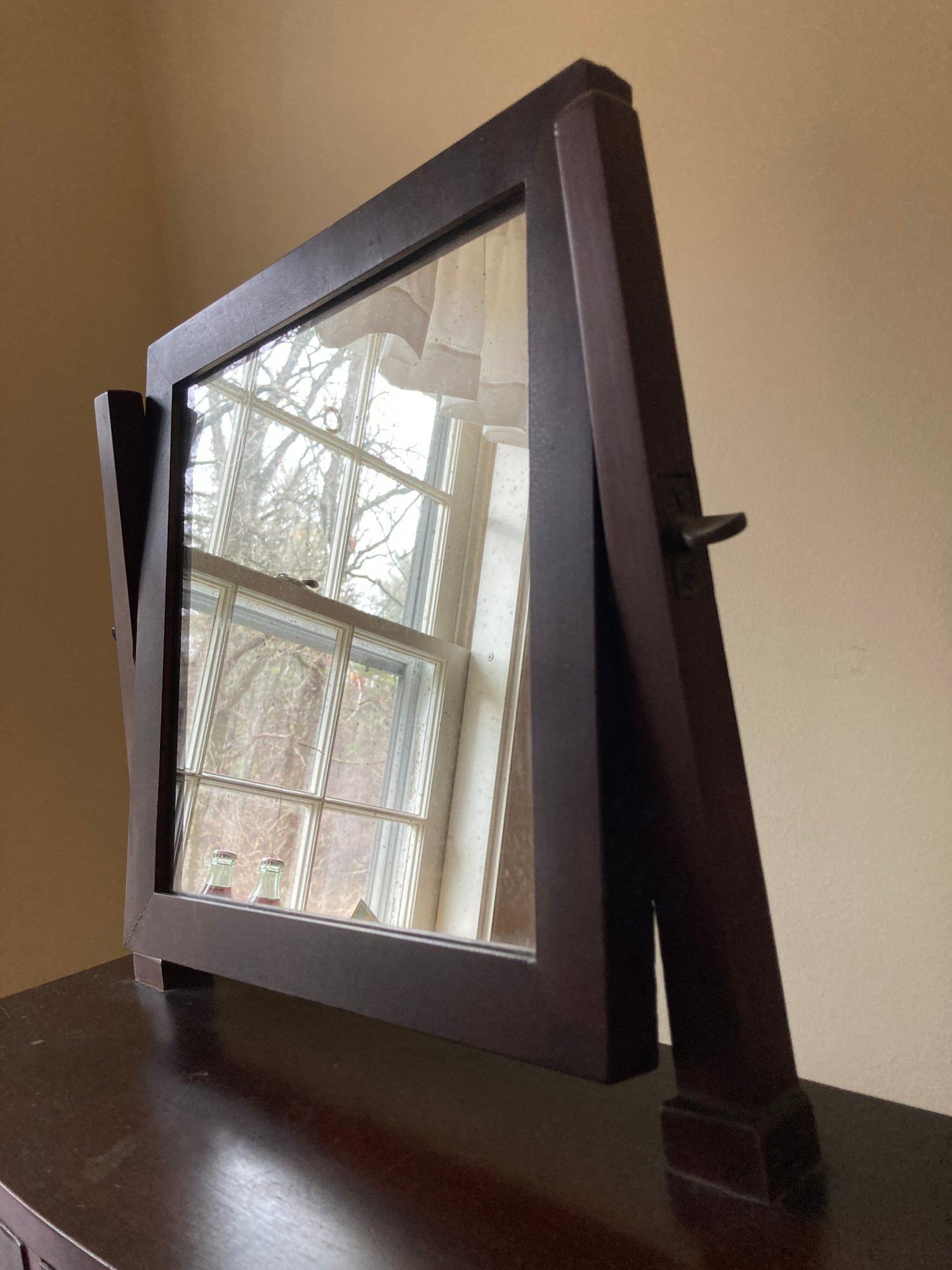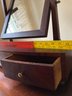 18in wide, 7in deep, 17in high. The mirror frame is 11.5in square.