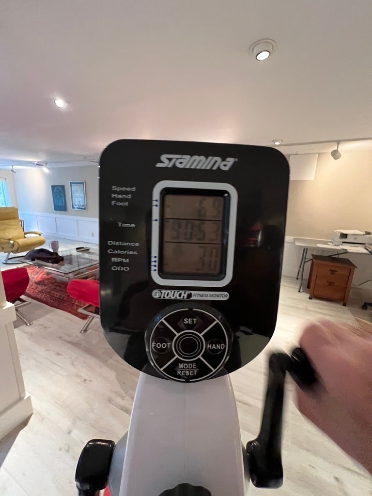 The item is a Stamina Recumbent Exercise Bike with Upper Body Exerciser.