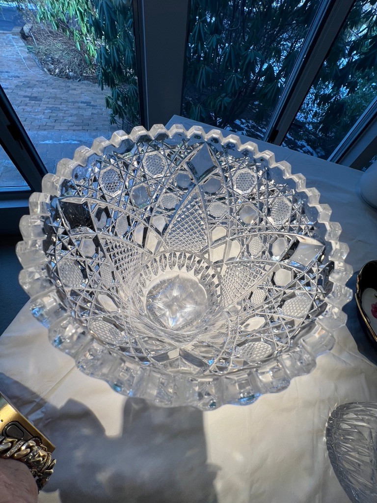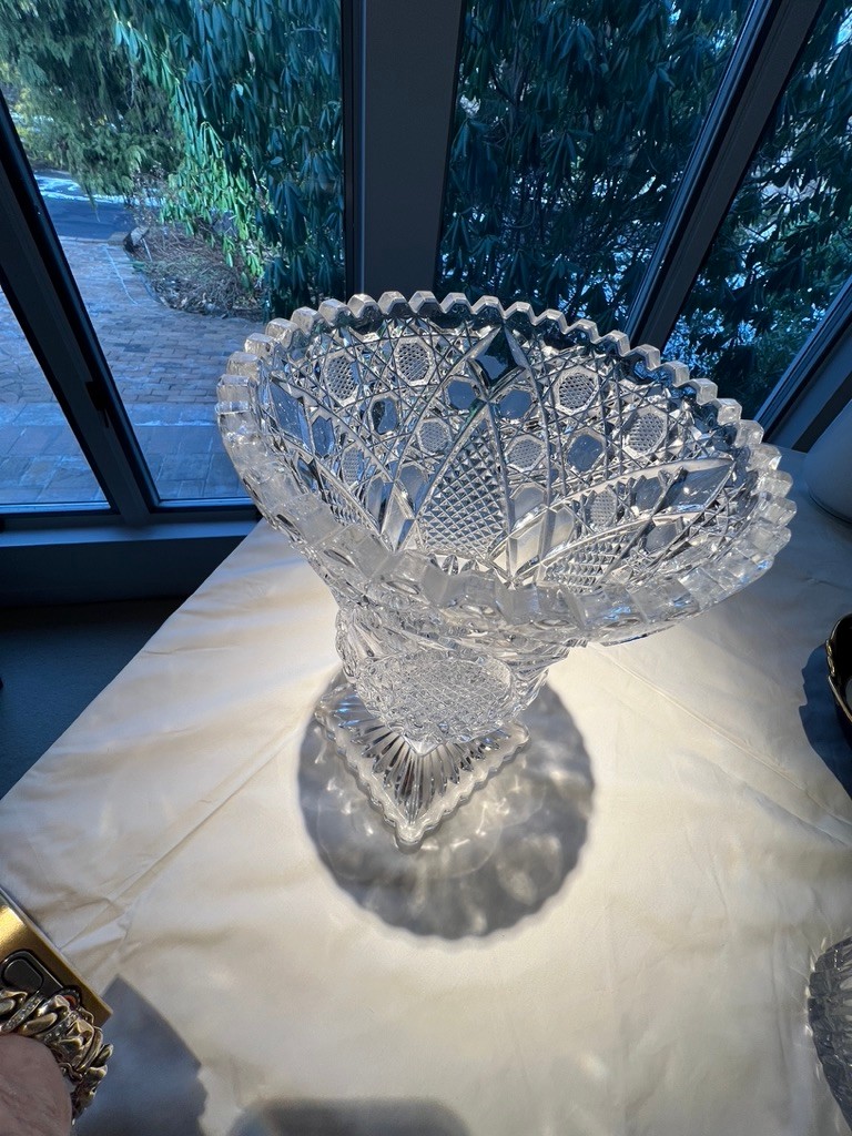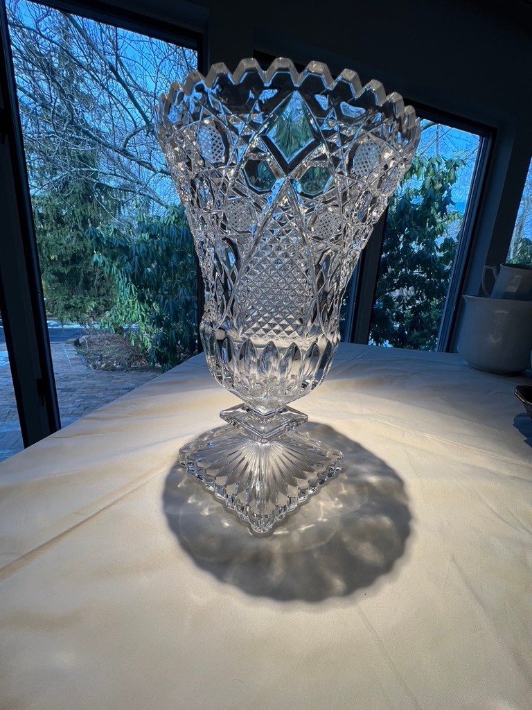 Star Cane pattern, polish lead crystal, square base, excellent condition