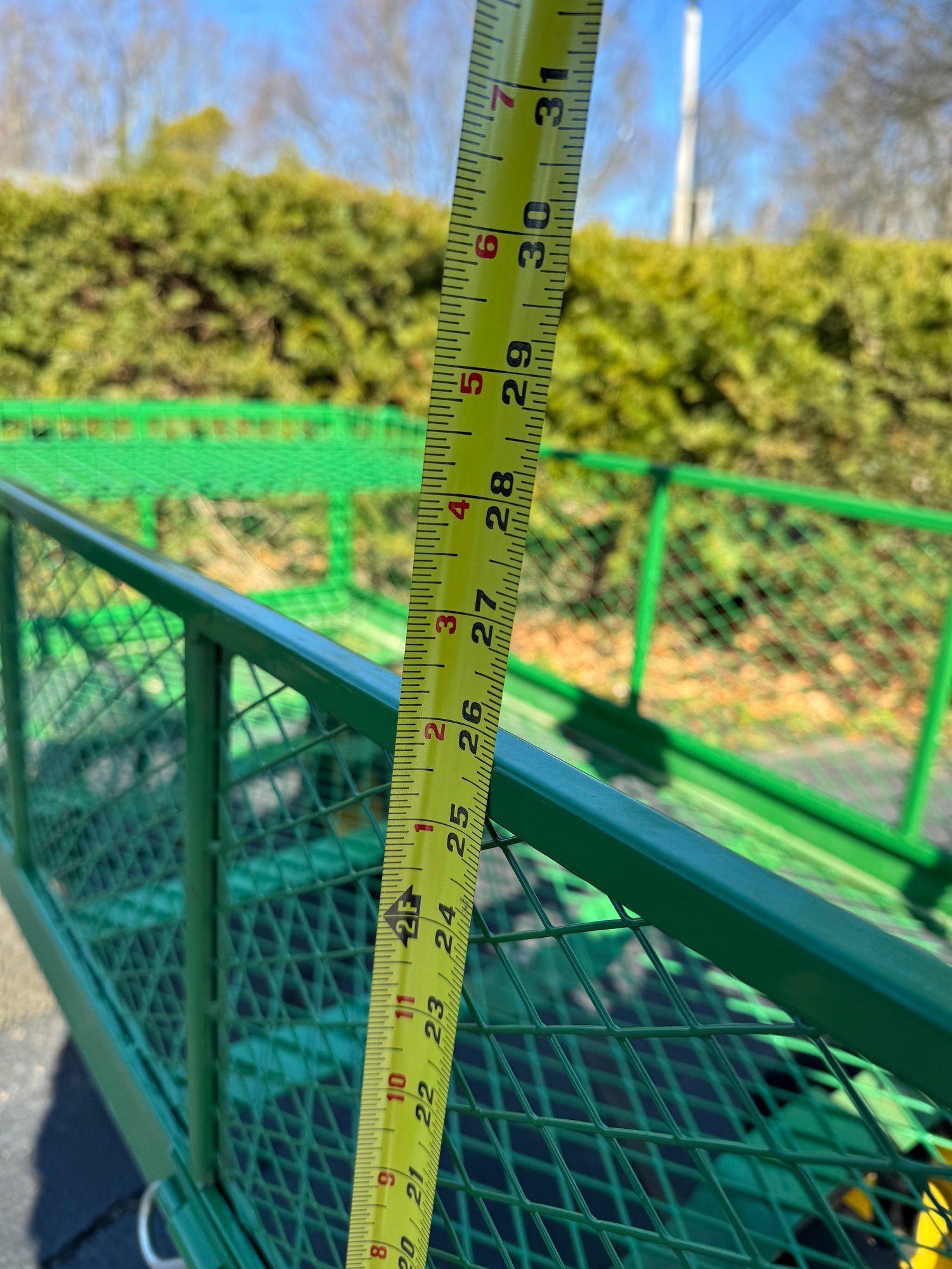 We believe this piece is made by falconer but ultimately are unsure. The two pins in the rear that are missing from the photos have been found and will be included with this lot therefore all pins are presents it is in good shape and all tires hold air. The cart measures approximately 24” wide, 51.5” long with the handle folded up and 26” tall to the top of the side.