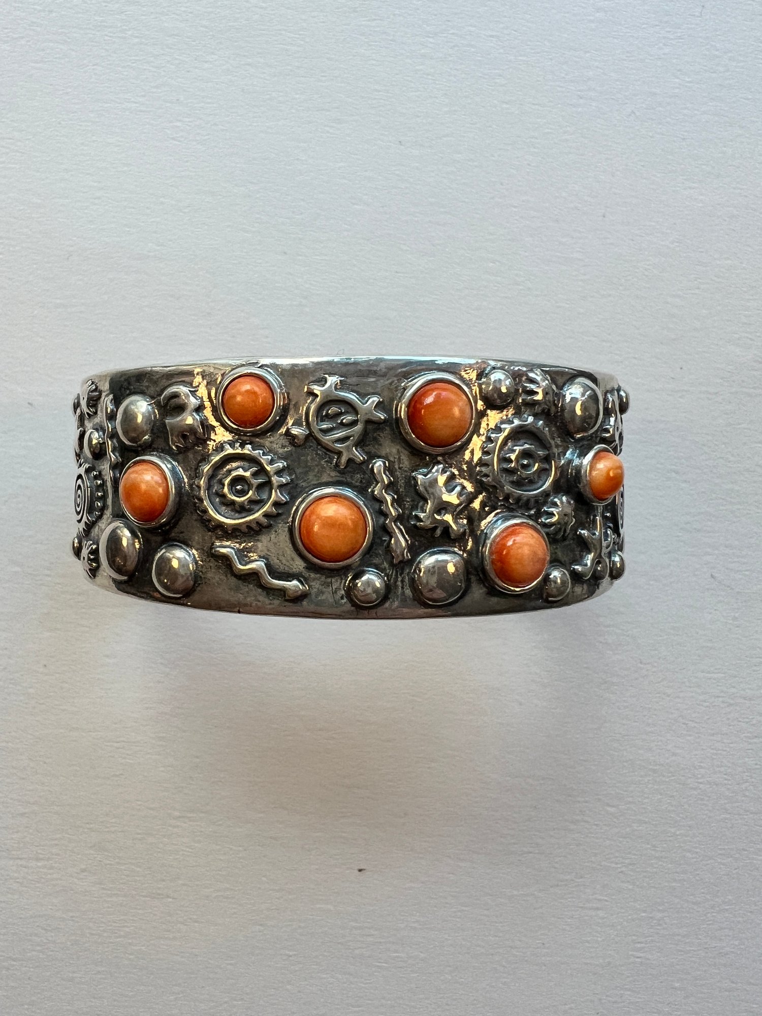 Sterling Silver 35.1 Dwt, Natural Coral, With Nautical Design, Beautiful Cuff!