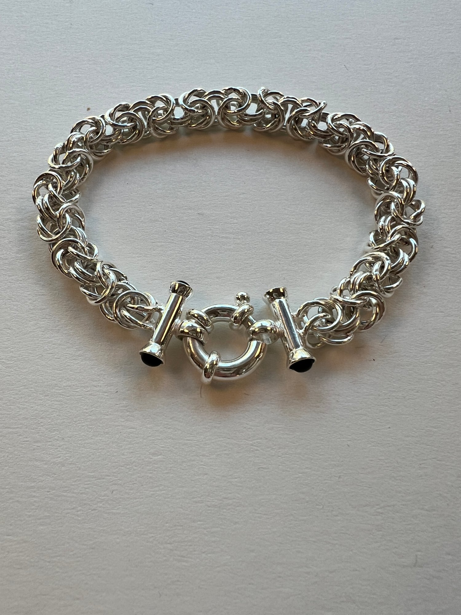 Sterling Silver Byzantine Rolled Bracelet, With Cabachon Black Onyx Ends Weighs 11.6 Dwt