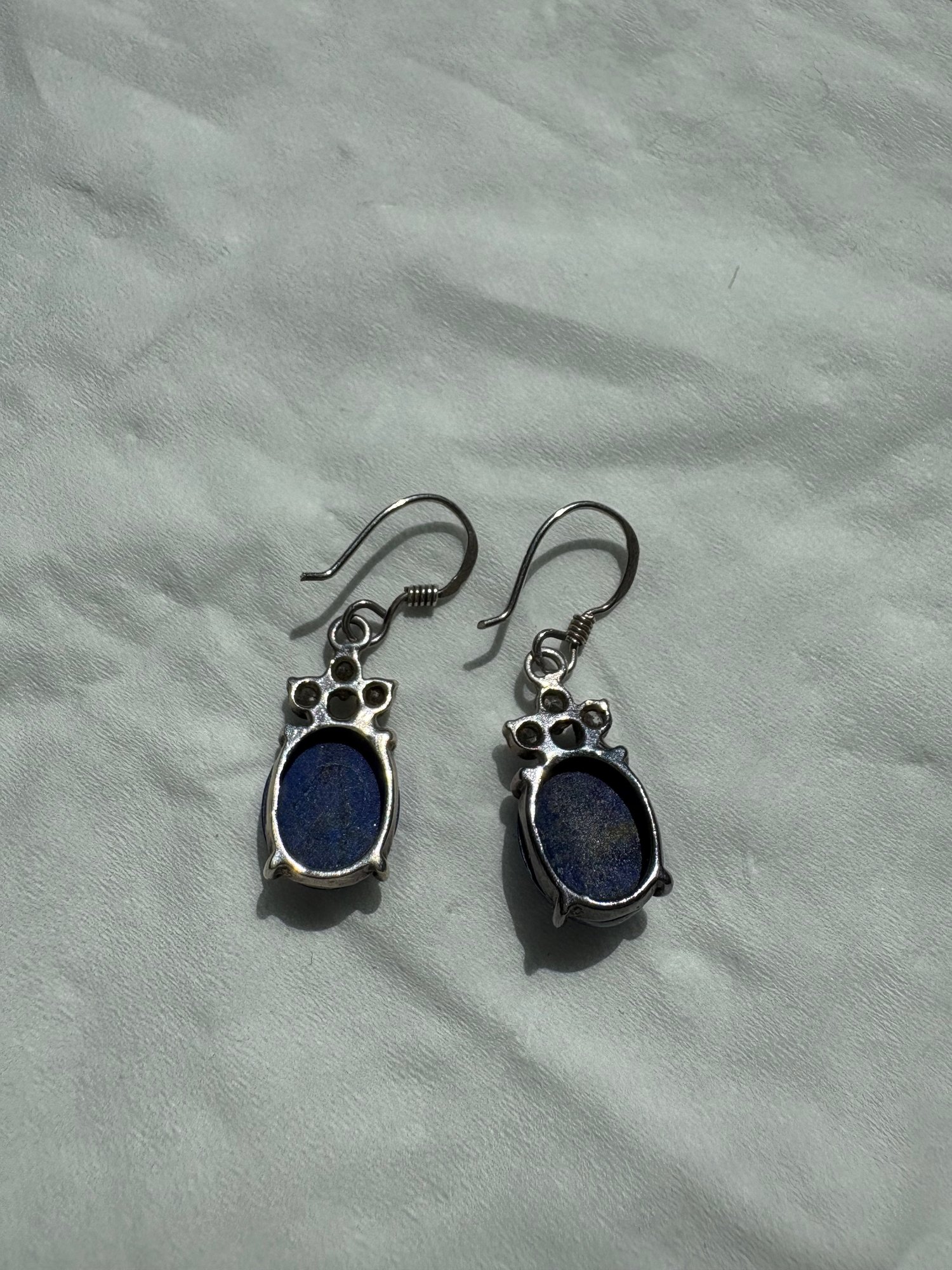 Sterling Silver Dangle Earrings Featuring Oval Cabochon-cut Lapis Lazuli Stones