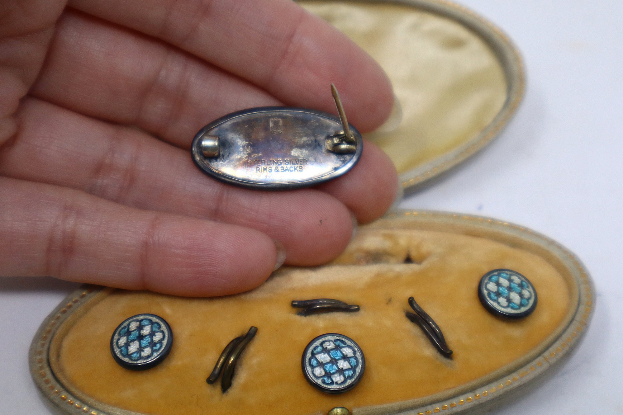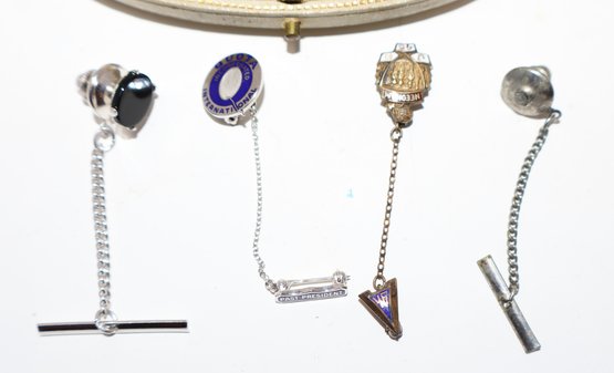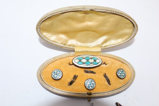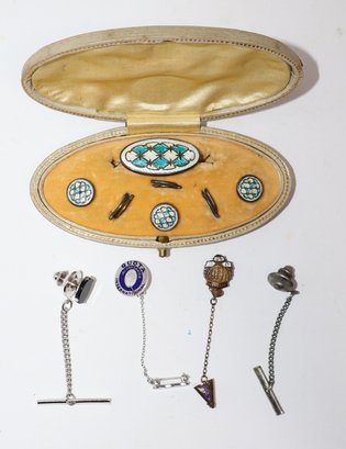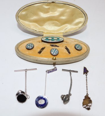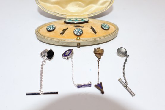 Sterling Silver & Enamel Gentleman's Dress Set With Tie Tacks