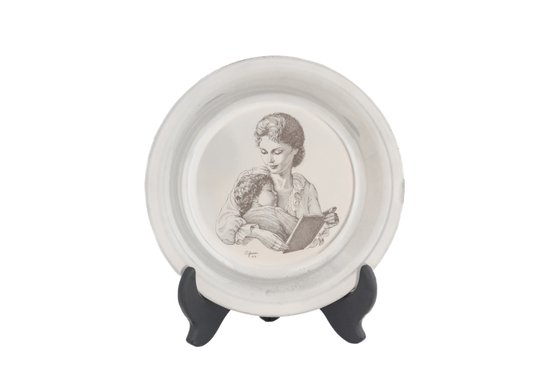 Limited edition 1974 Franklin Mint sterling silver Mothers Day plate, numbered 4204 on black medallion, artist signature on front
