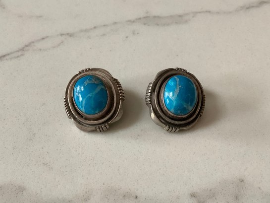 Sterling Silver Turquoise Clip On Earrings #64