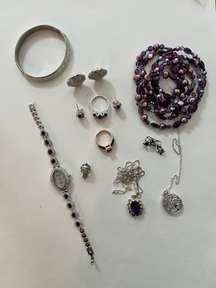 Sterling Silver With Amethyst And Tahitian Pearls, In Lavender And Pinks,