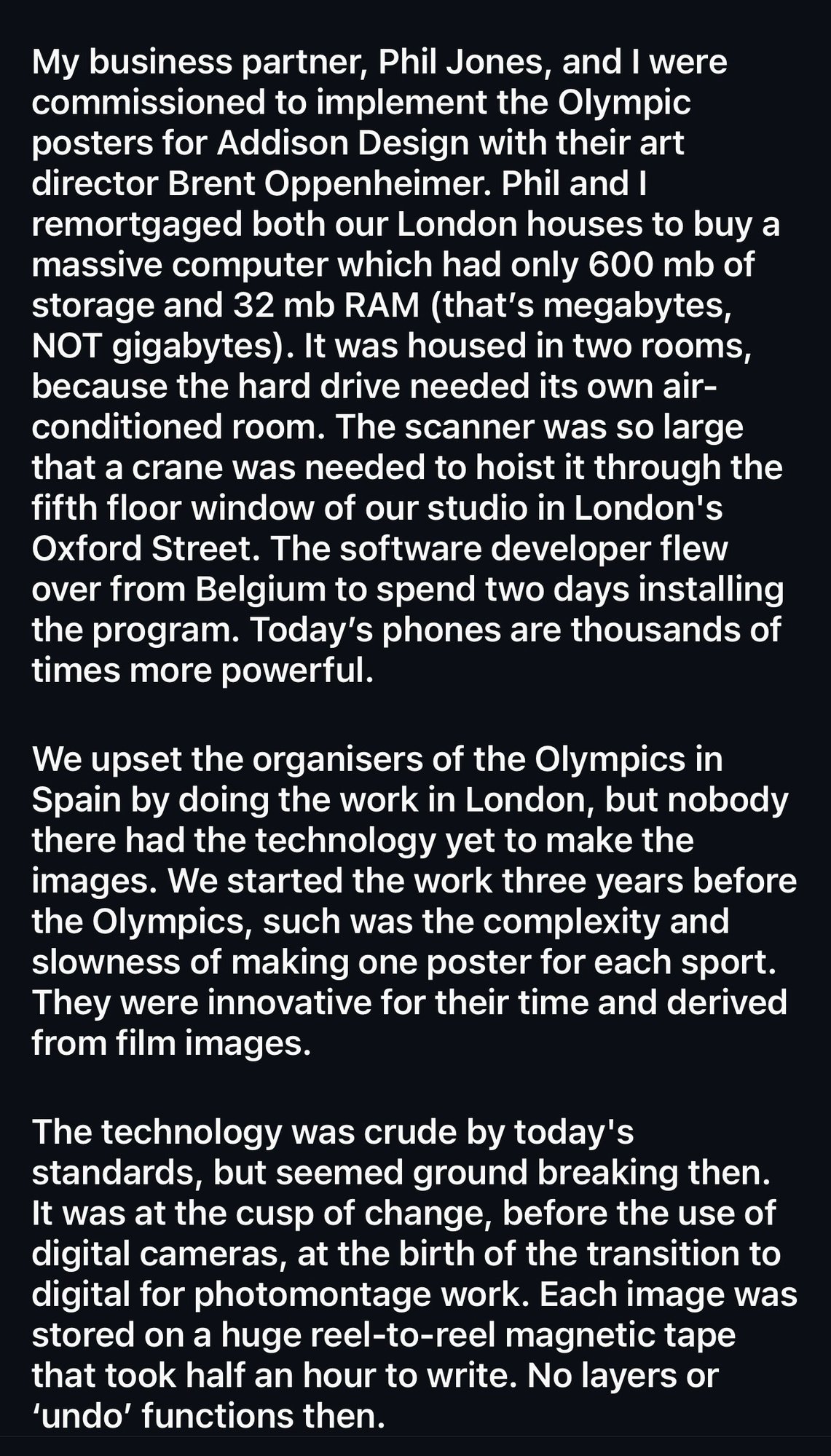 Photographer Steve Bloom, along with his business partner Phil Jones was commissioned by Addison Design to produce a series of 28 official sports posters for the Barcelona 1992 Olympics, sponsored by Telefónica. The collection features various Olympic sports, and that include: Archery, Diving,Fencing Soccer, Hockey, Tennis, Basketball Weightlifting + More! The posters were notable for their use of early, cutting-edge digital photographic techniques before the widespread availability of software like Photoshop. Each poster typically features a stylized, action shot of an athlete in their respective sport. Size 17 x 13