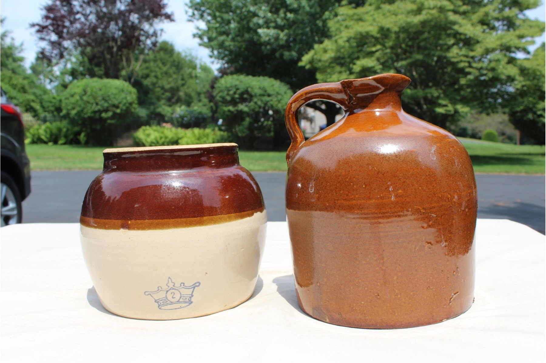 Great pair, 2 Qt. Bean pot and likely I Gal. jug.