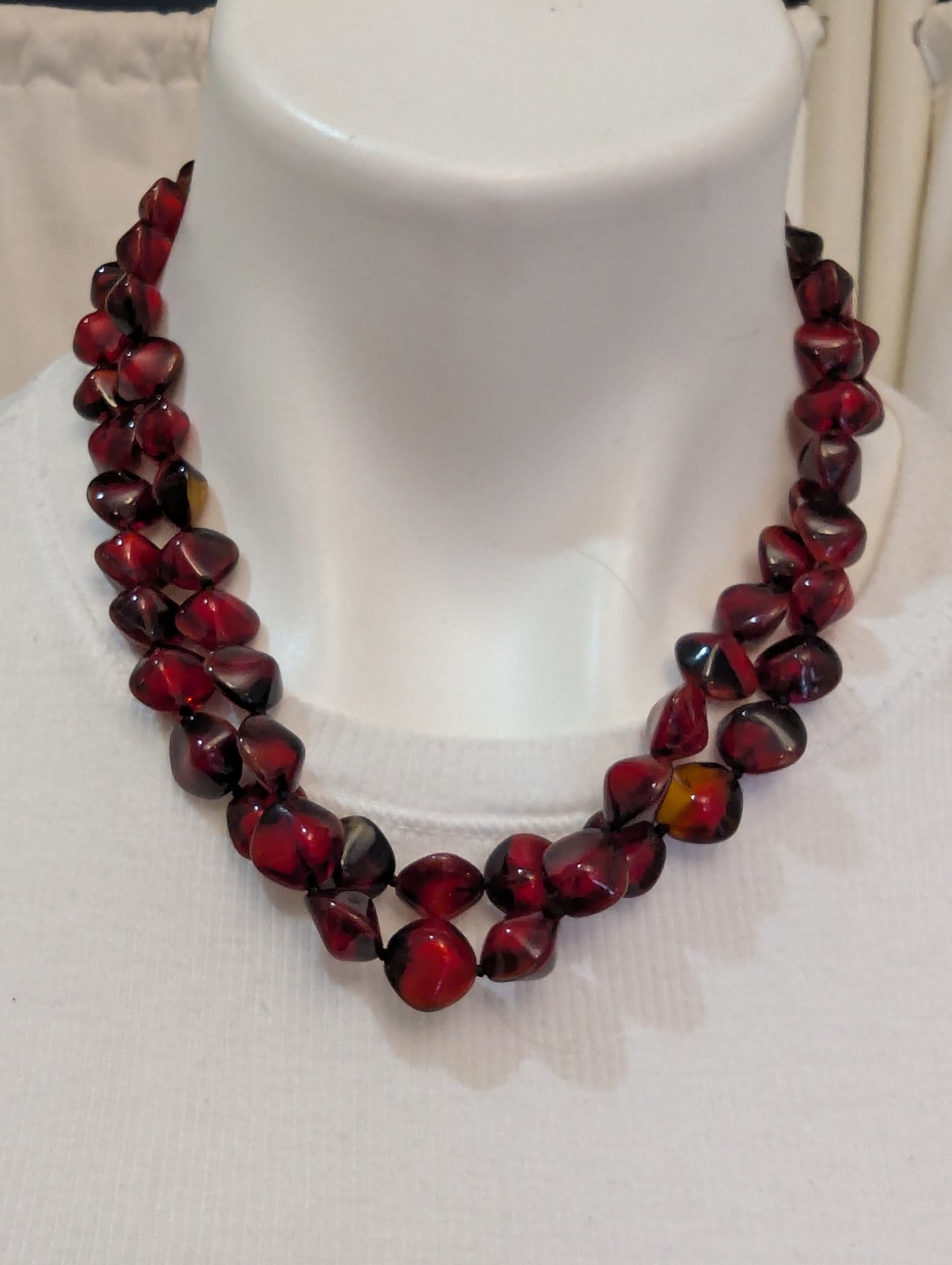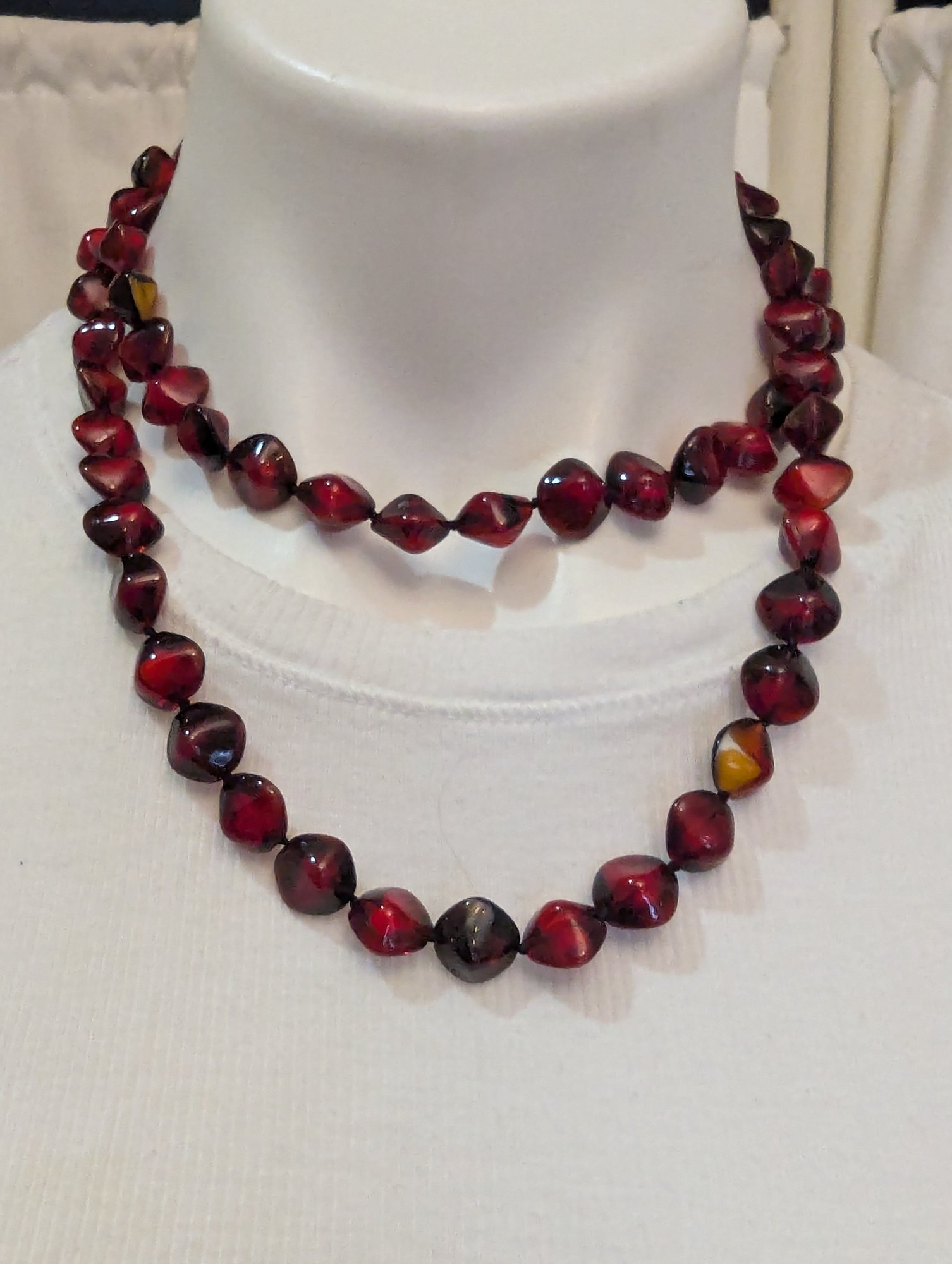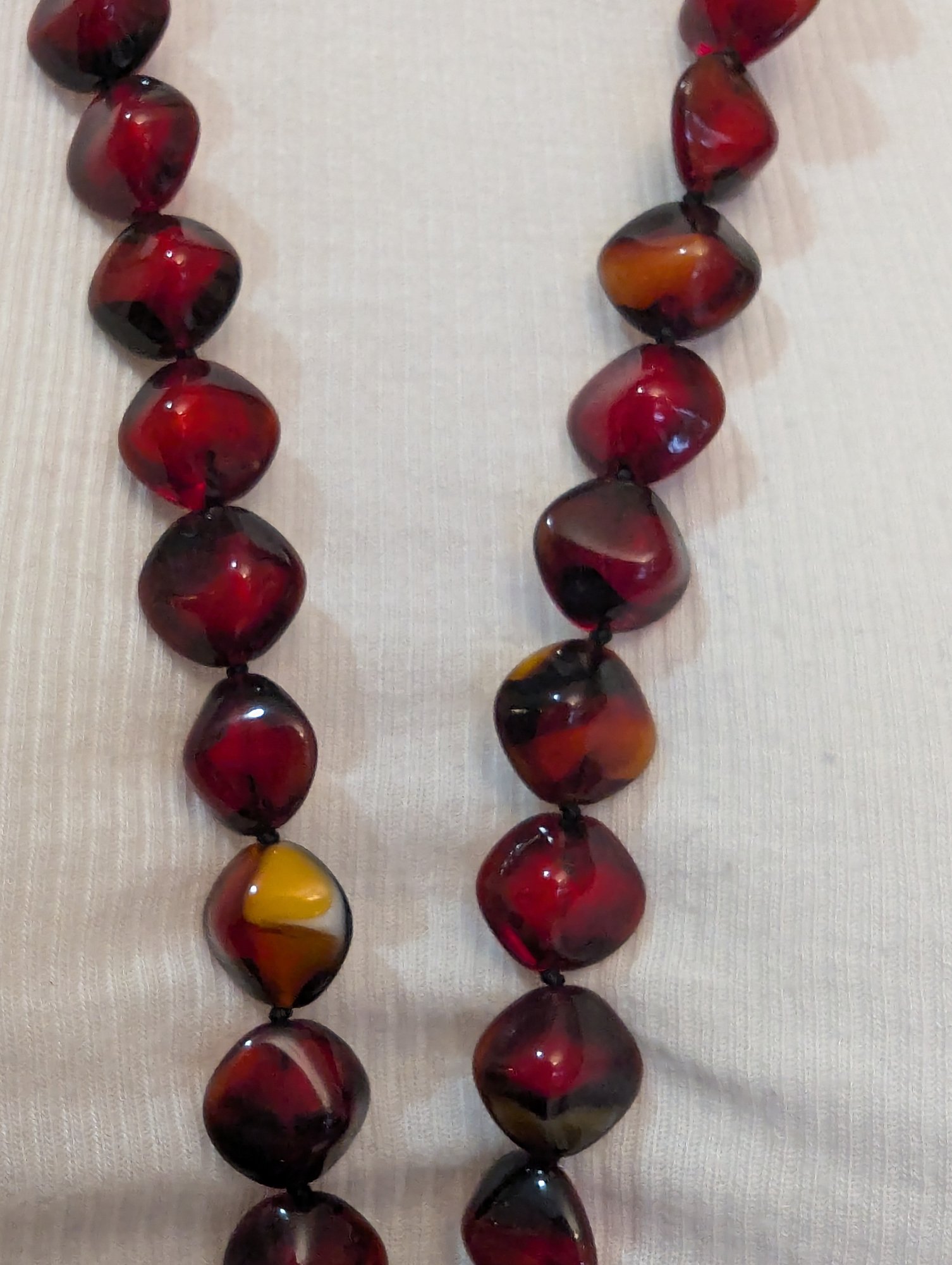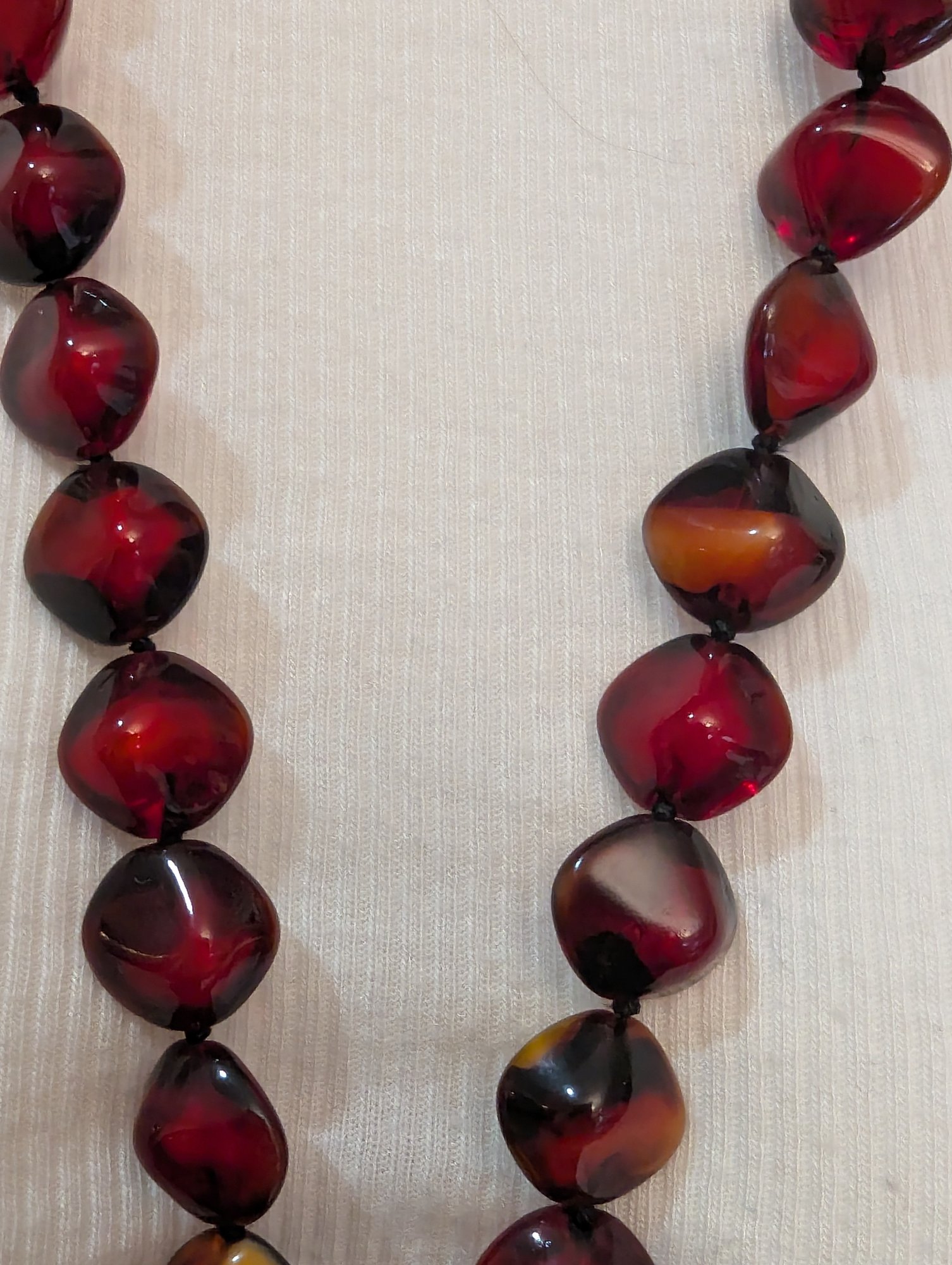 Striking Cherry Amber Glass Beads From Italy In A 36" Necklace