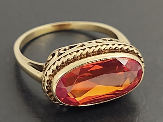 SIZE 9 1/2. WEIGHS 4.9 GRAMS. THIS AMAZING RING DISPLAYS SO WELL.. JUST LOOK AT THE COLOR OF THIS SAPPHIRE POP. THE SAPPHIRE IS ABOUT 4.60ct. BEAUTIFUL ART DECO DESIGN. THERE IS A LITTLE WEAR TO A COUPLE EDGES OF THE FACETS, BUT YOU REALLY CANT SEE THAT WITHOUT LOOKING FOR IT WITH A JEWELERS LOOP. THIS IS TRULY AN AMAZING RING.