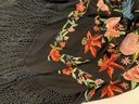 Black with embroider floral pattern and knotted fringe