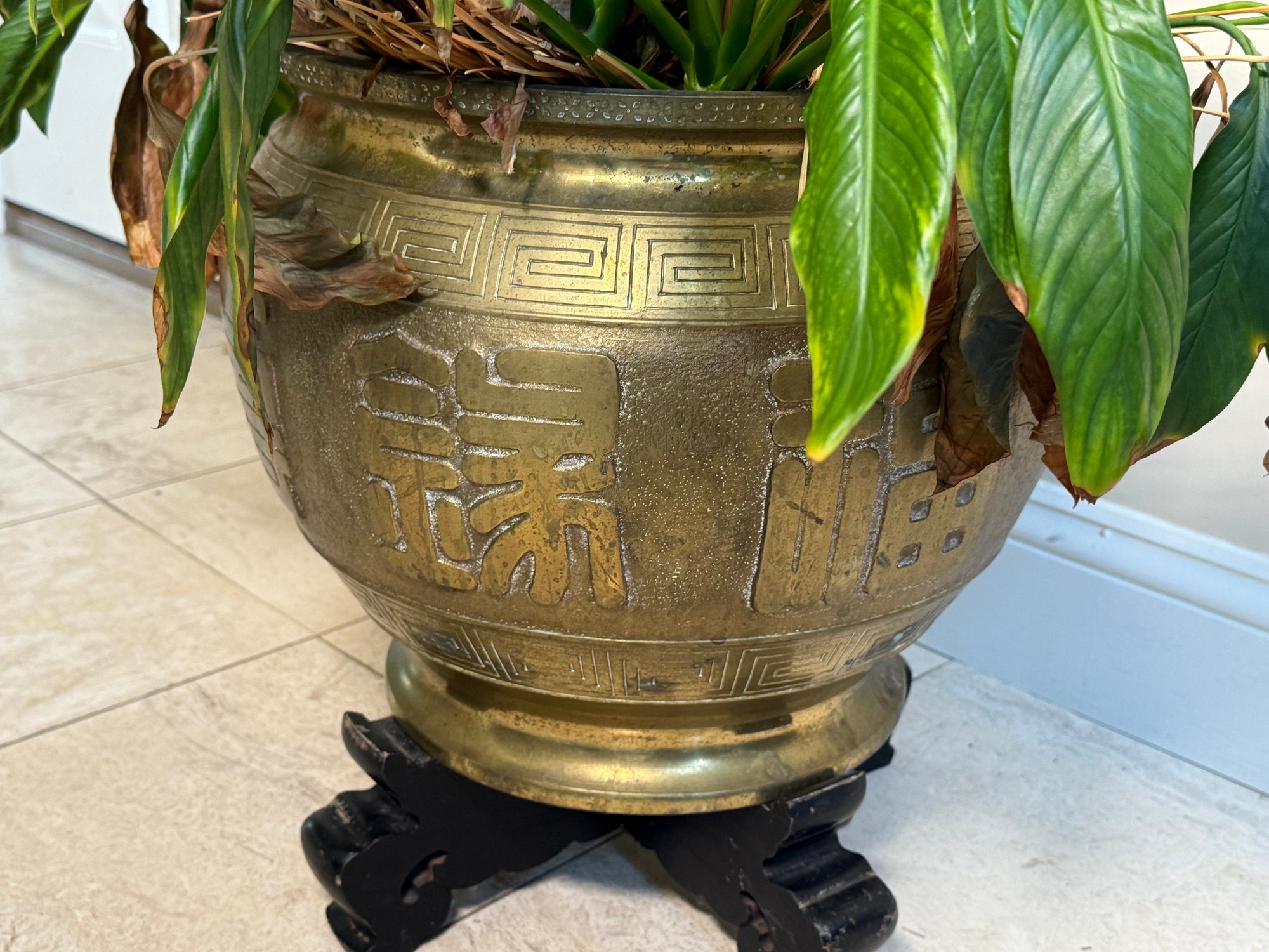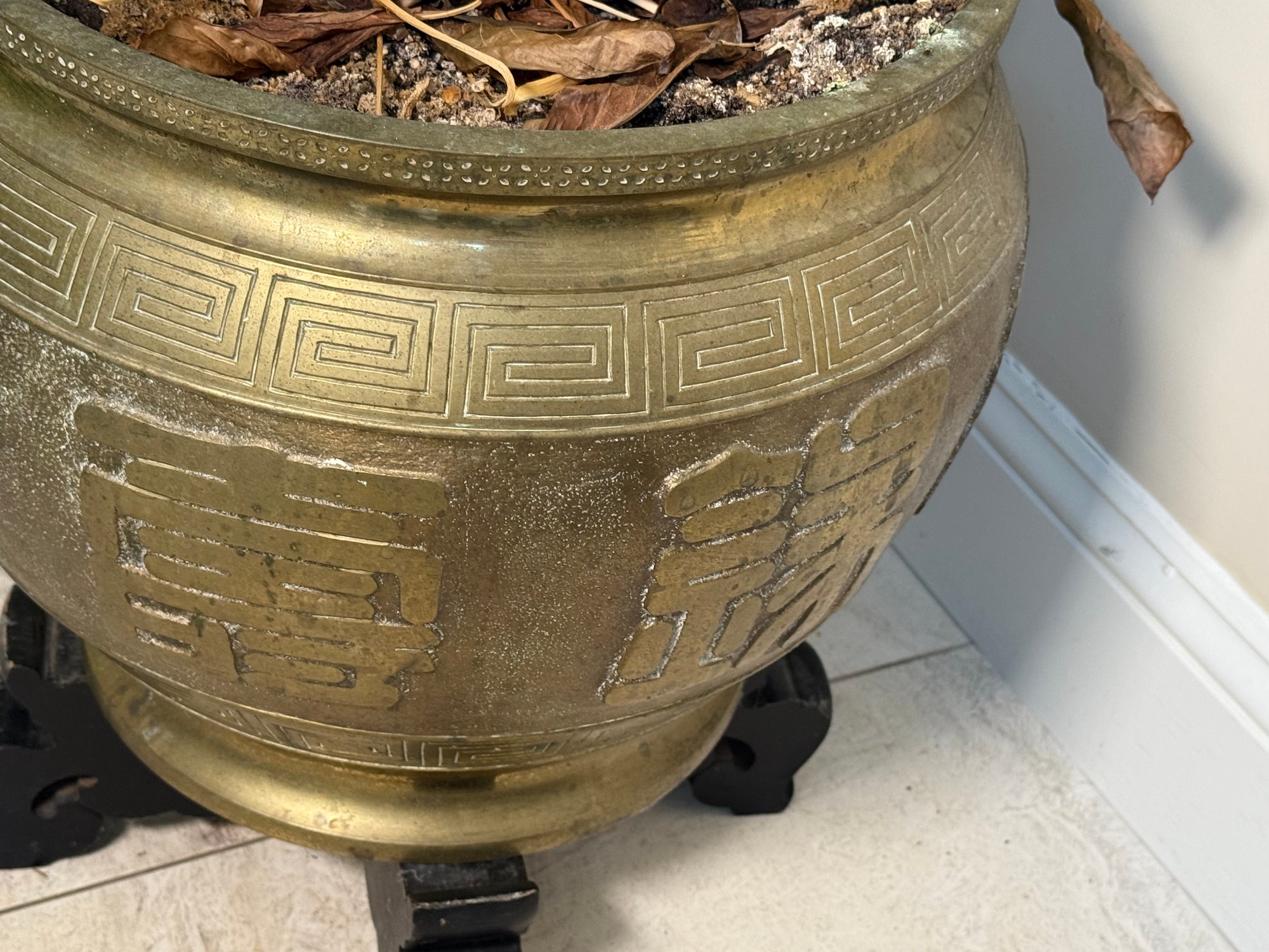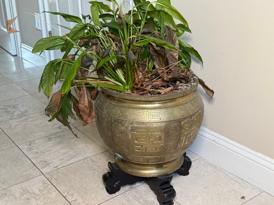 Stunning Solid Brass Planter With Chinese Motifs