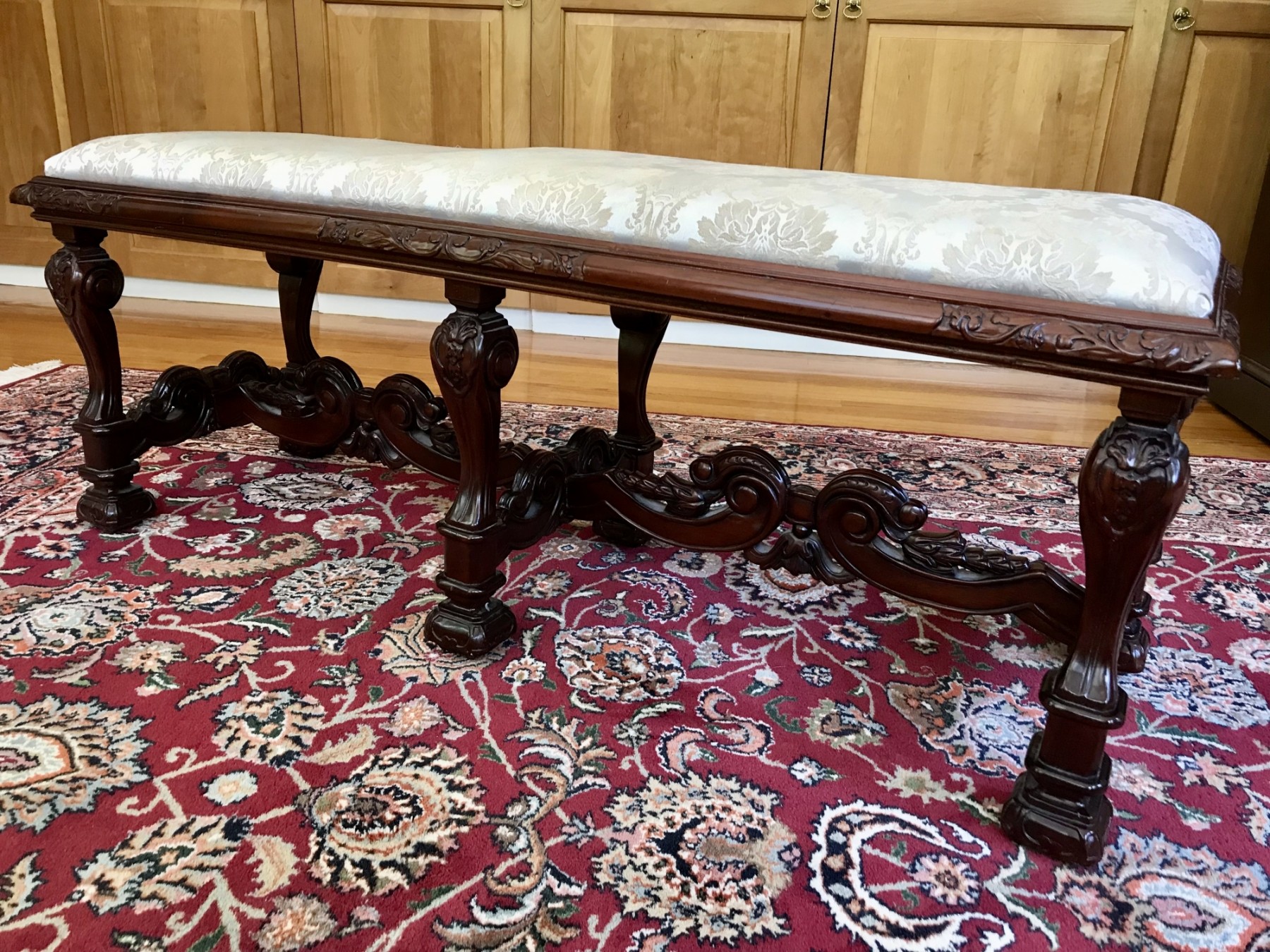 this bench has stunning details in the carved wood base!