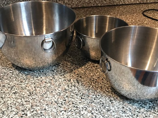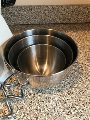 5 Stainless Steel Mixing Bowls: Includes the 2 standard nesting bowls designed for the mixer base, plus 3 additional stainless steel mixing bowls of various sizes.