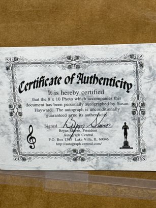 Susan Hayward Autographed Photograph Professionally Framed & Matted Includes COA 13 X 16"
