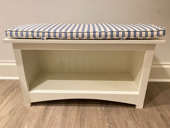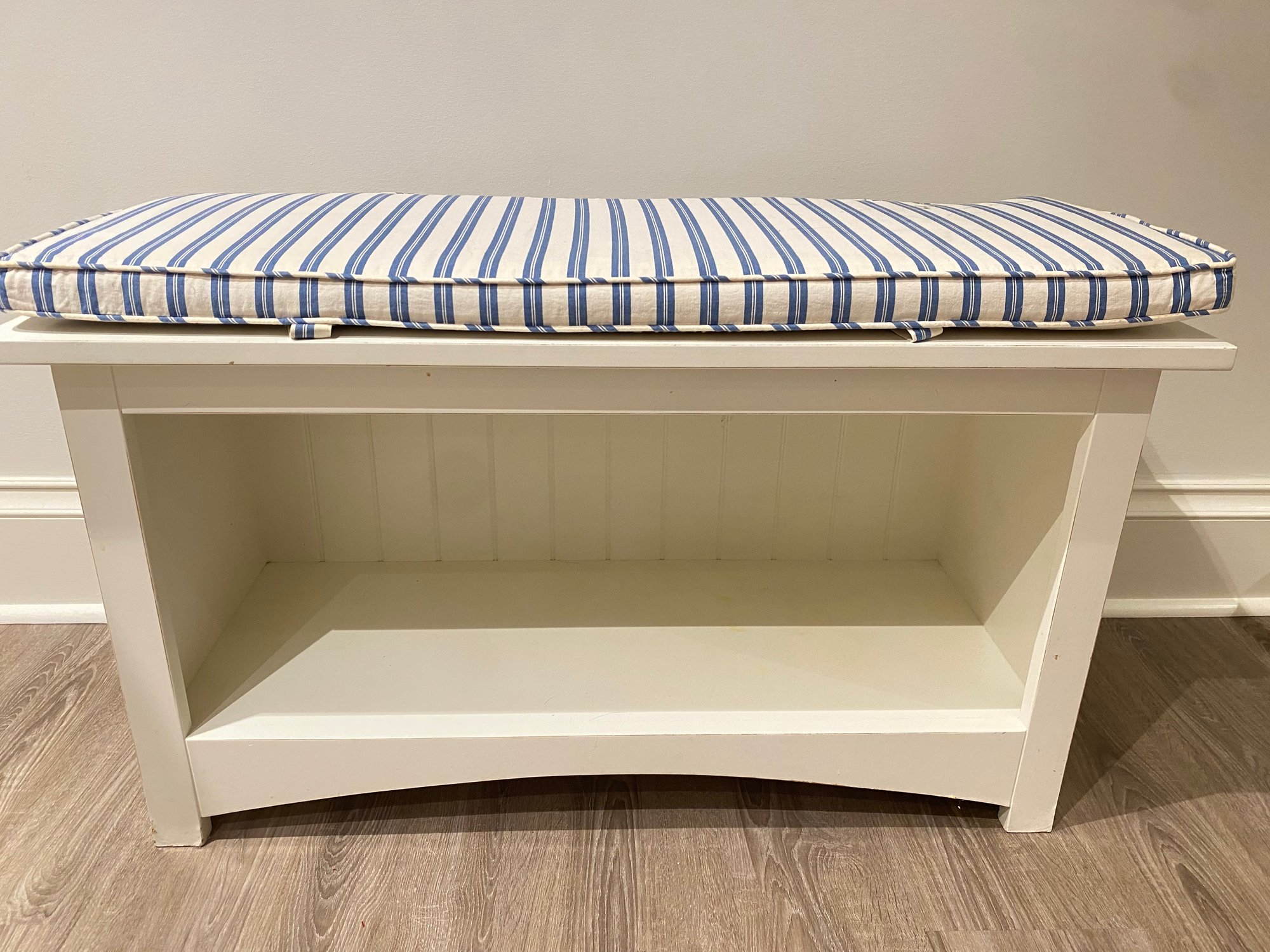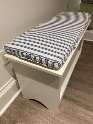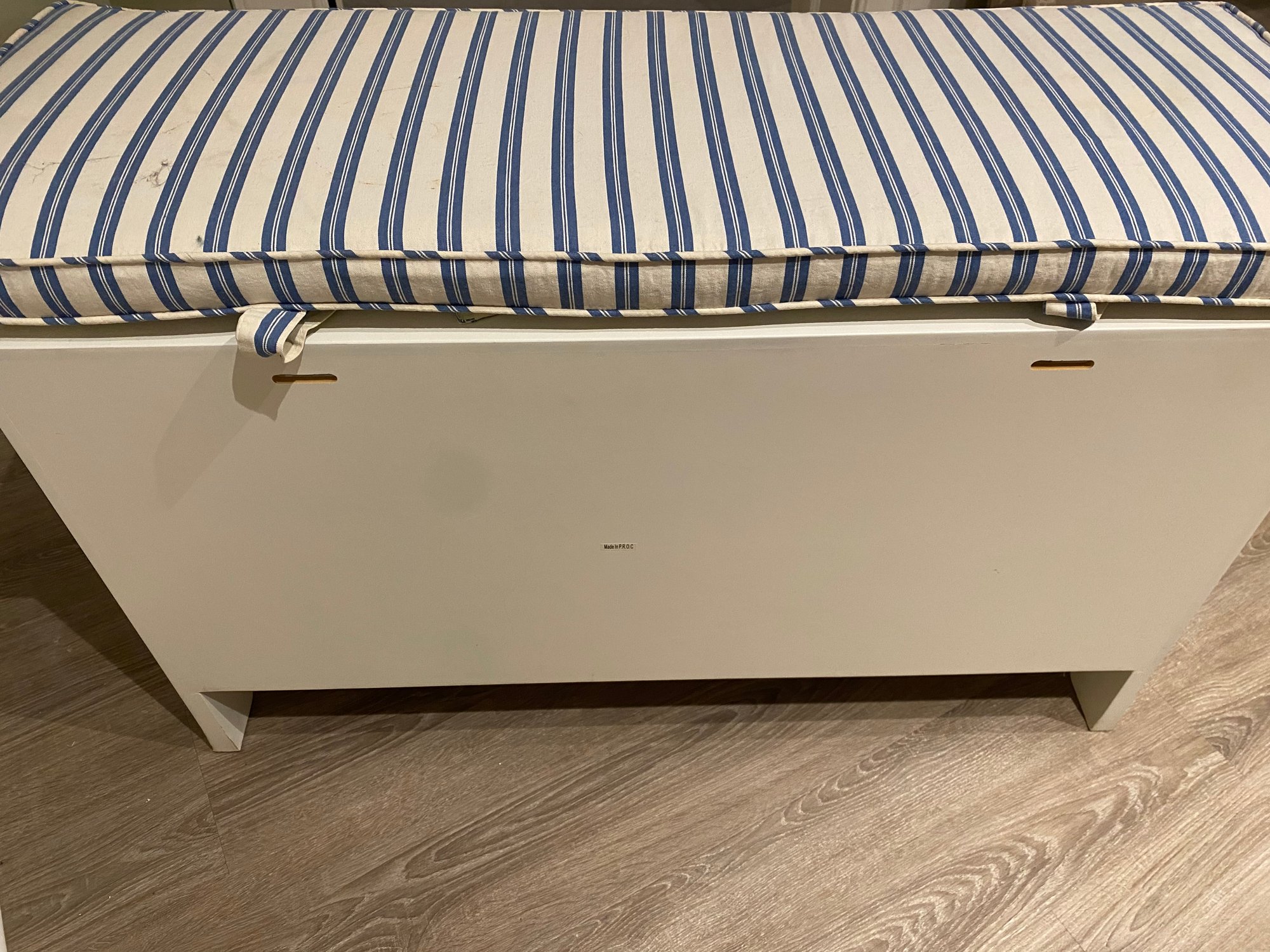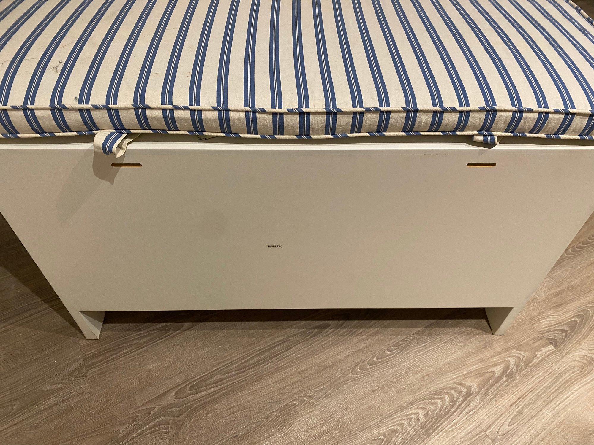 Finish white matte lacquer with blue white stripe cushion
