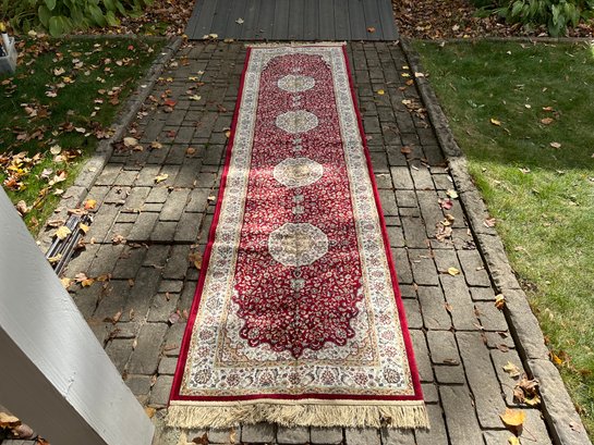 A beautiful “silk look” Symphony Belgium rug runner with pretty medallions. Never Used. Brought Back From Dubai India. In great condition.