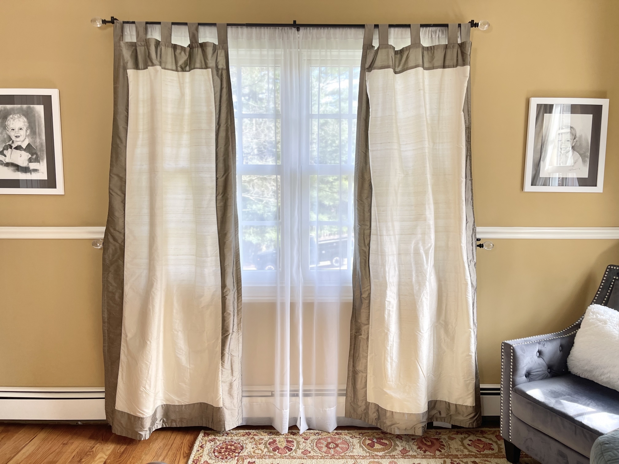 Includes: 4 tab top curtains, 4 sheer panels, 2 double curtain rods and 4 curtain holdbacks.