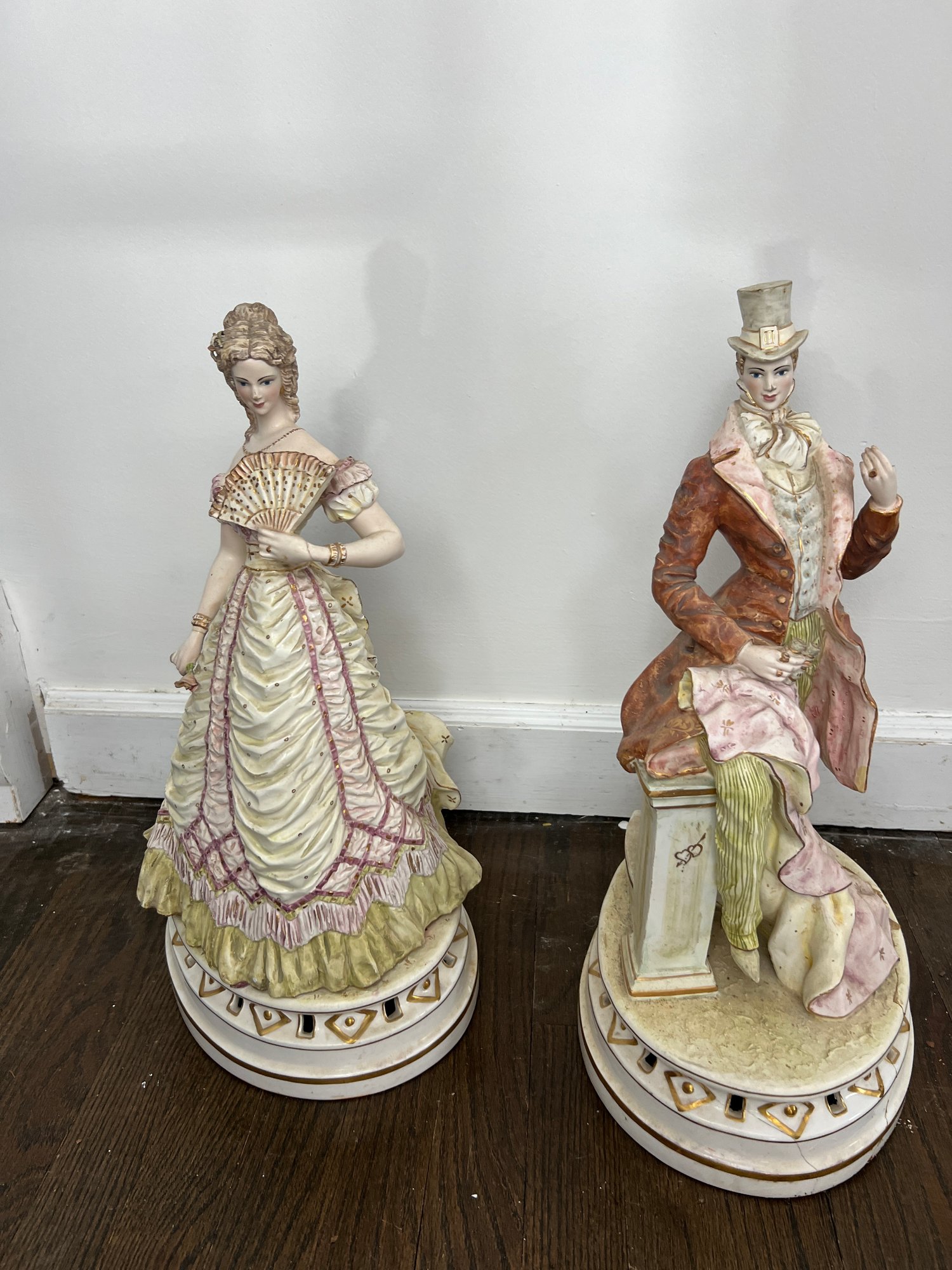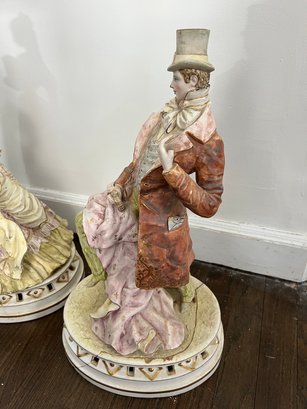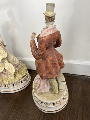 Italian hand-painted vintage figurines of a man and woman in eighteenth century fashion.