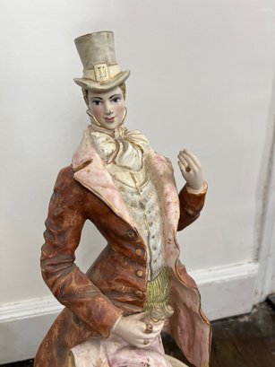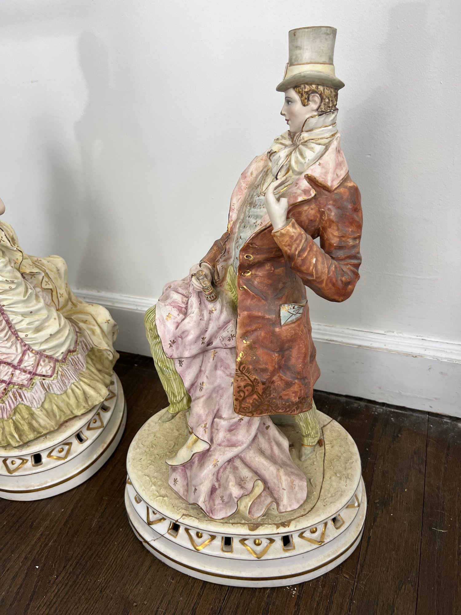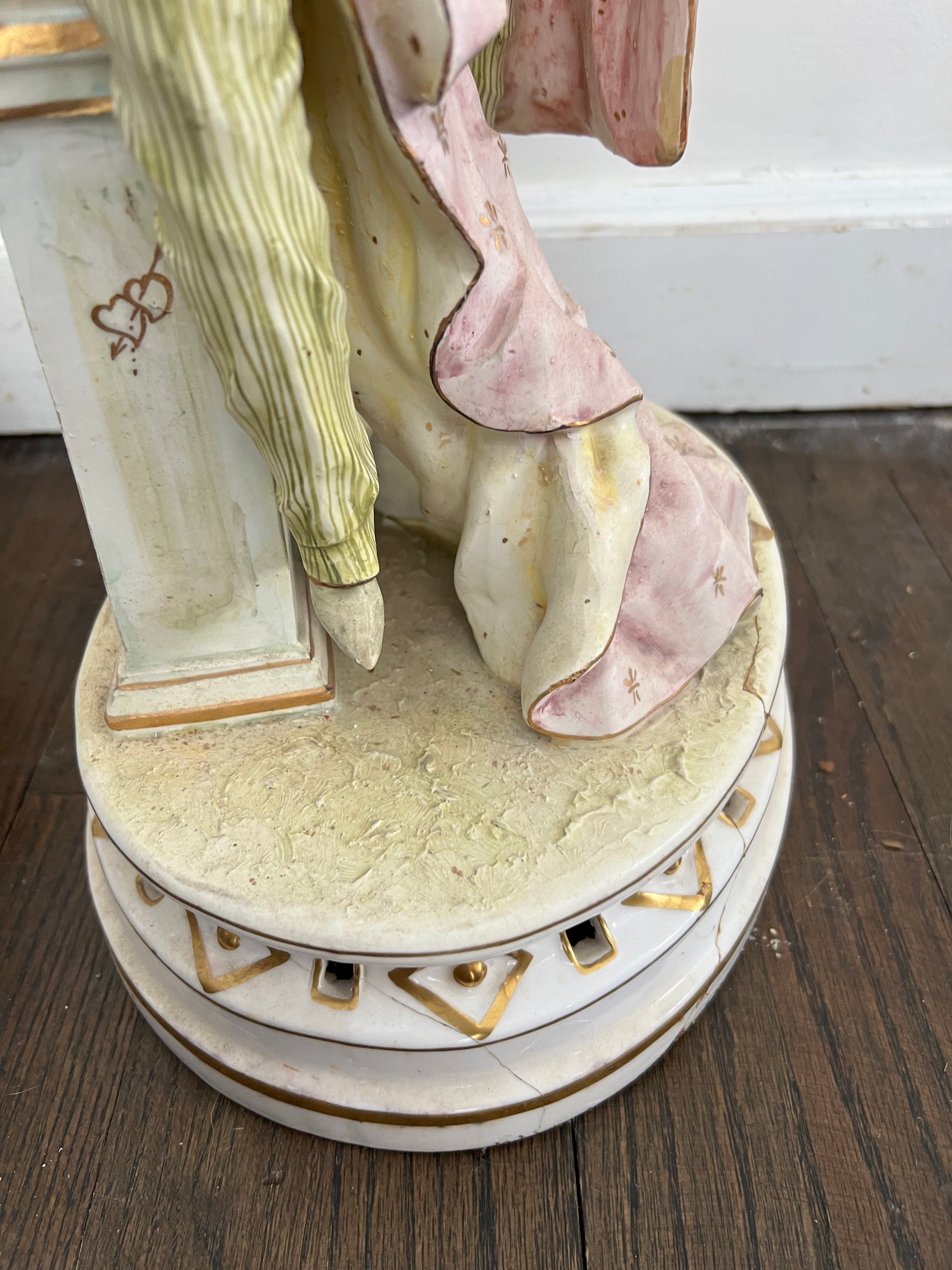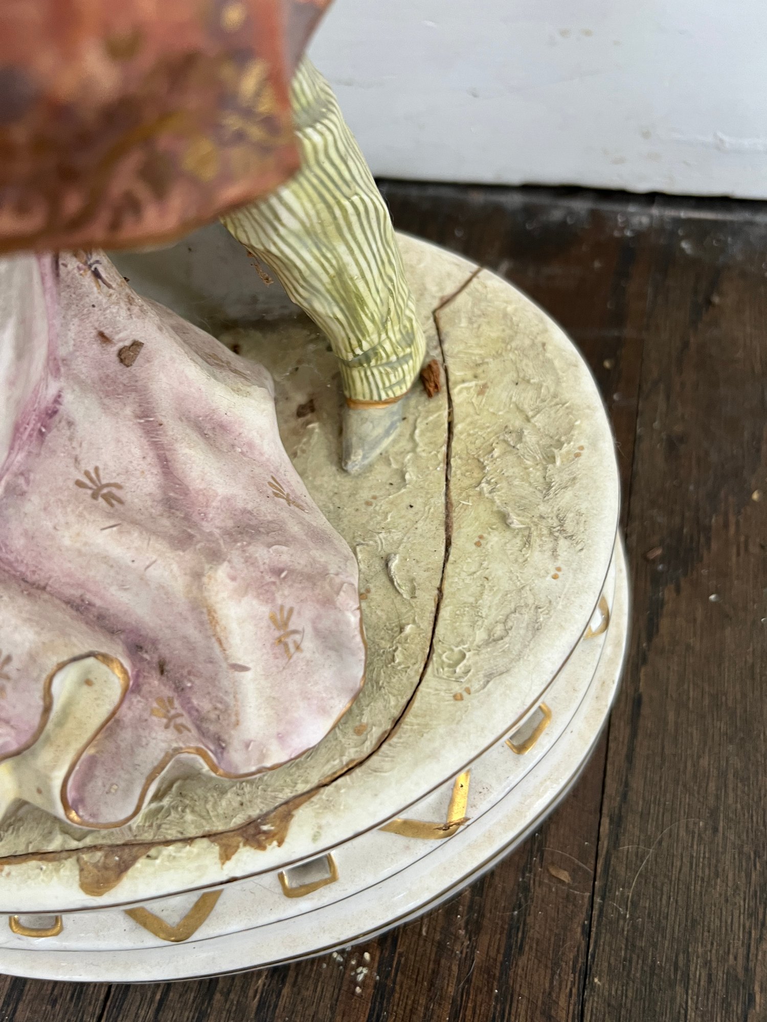 Notes: Masculine figurine has an old crack/repair to the base and a missing finger.
