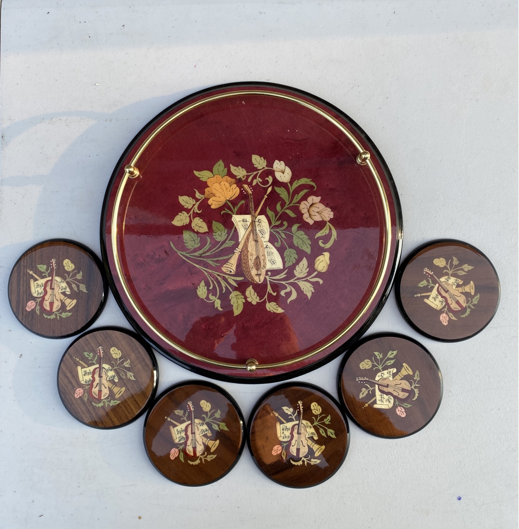 Large Tray is 11'' , each coaster is approx 4''
