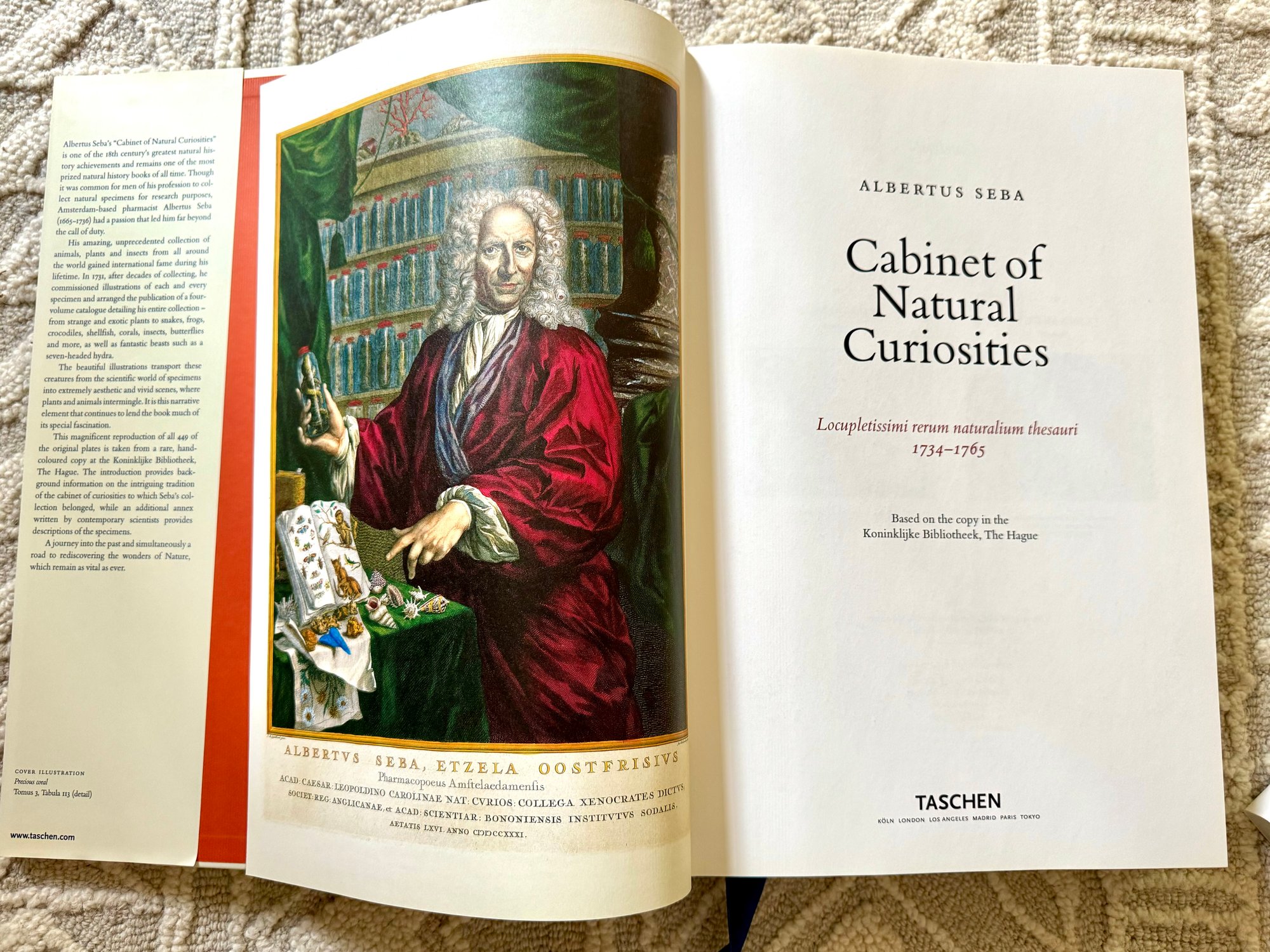 Gorgeous large and heavy coffee table book of the Cabinet of Natural Curiosities / Complete Plates in Color 1734-1765. Condition is good on book - outside paper cover has some lifting where paper does not lie perfectly flat on edges see all photos.